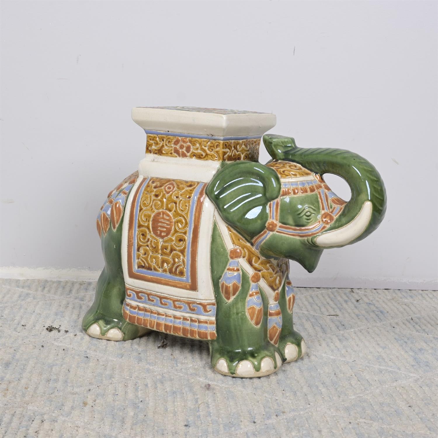 A CERAMIC ELEPHANT PLANT STAND (45H X 26W X 60D CM) (LEONARD JOEL DELIVERY: LARGE)