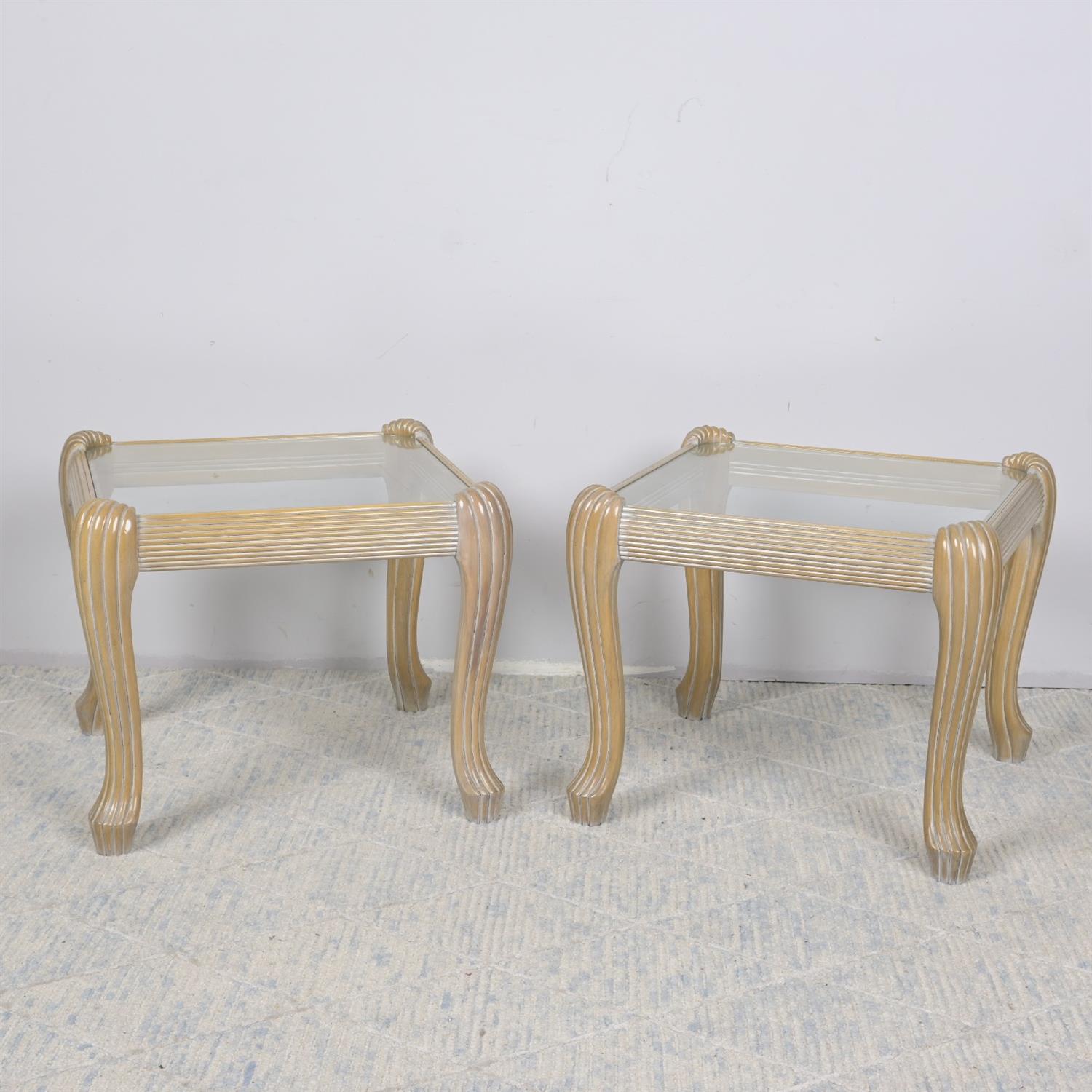 A PAIR OF GLASS INSET SIDE TABLES ON CABRIOLE LEGS (57H X 70W X 70D CM) (LEONARD JOEL DELIVERY: X-LARGE)