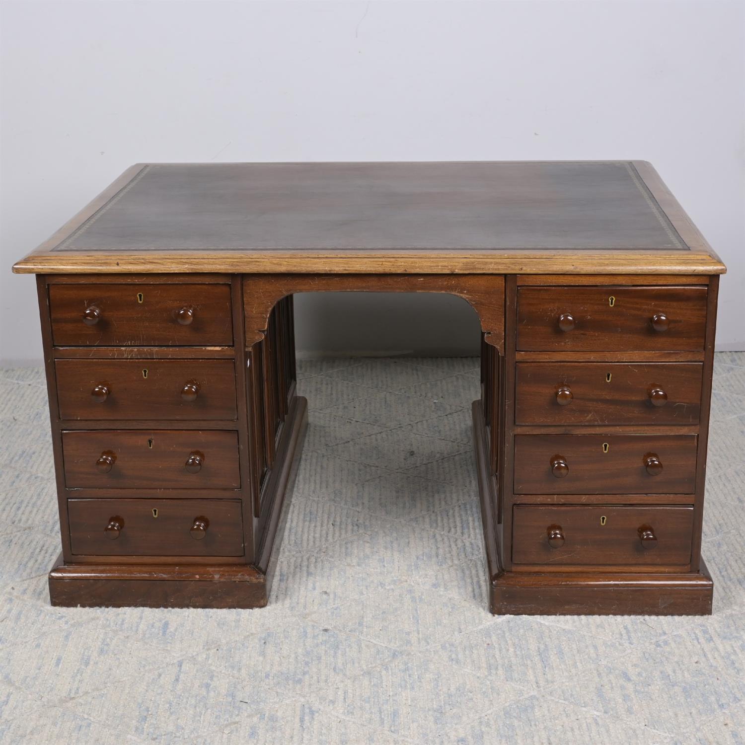 A VICTORIAN LEATHER INSET PEDESTAL DESK (A/F) (74H X 138W X 104D CM) (THIS HEAVY ITEM MUST BE REMOVED BY CARRIERS AT THE CUSTOMER'S EXPENSE. LEONARD JOEL STAFF CANNOT ASSIST CARRYING THIS ITEM)