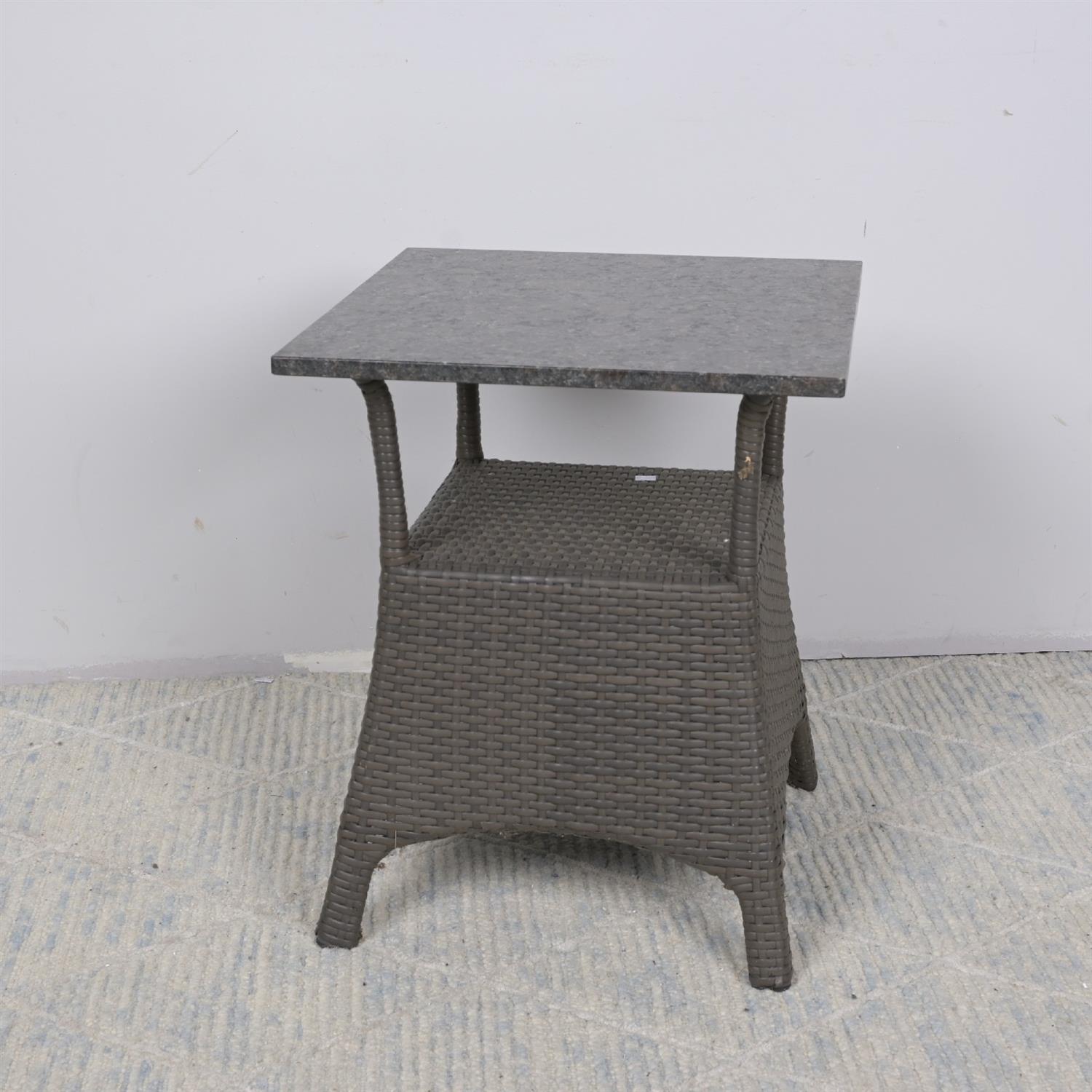 AN OUTDOOR SIDE TABLE WITH GRANITE TOP (A/F) (61H X 50W X 50D CM) (LEONARD JOEL DELIVERY: X-LARGE)