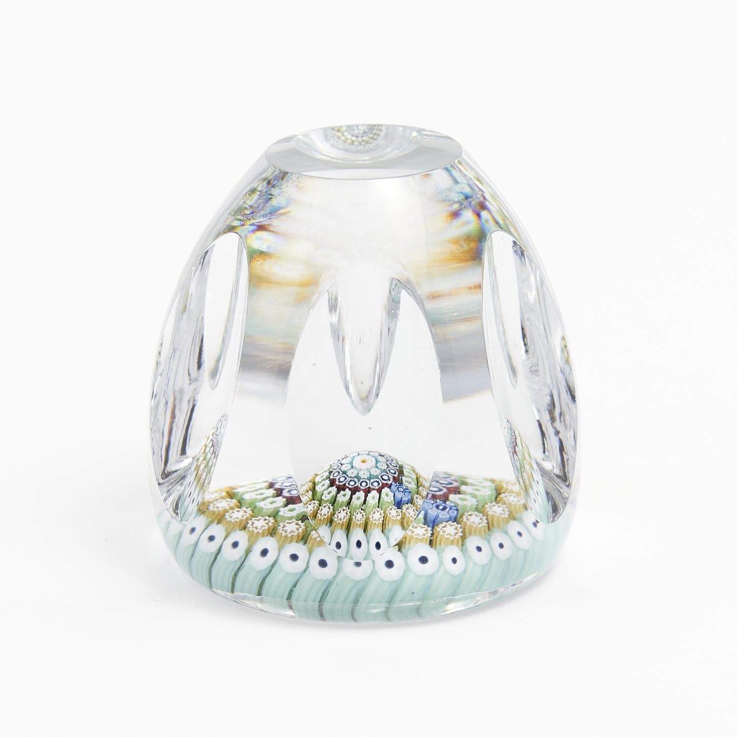 A MILLEFIORI FACETED PAPERWEIGHT H.7.5CM, LEONARD JOEL DELIVERY SIZE: SMALL