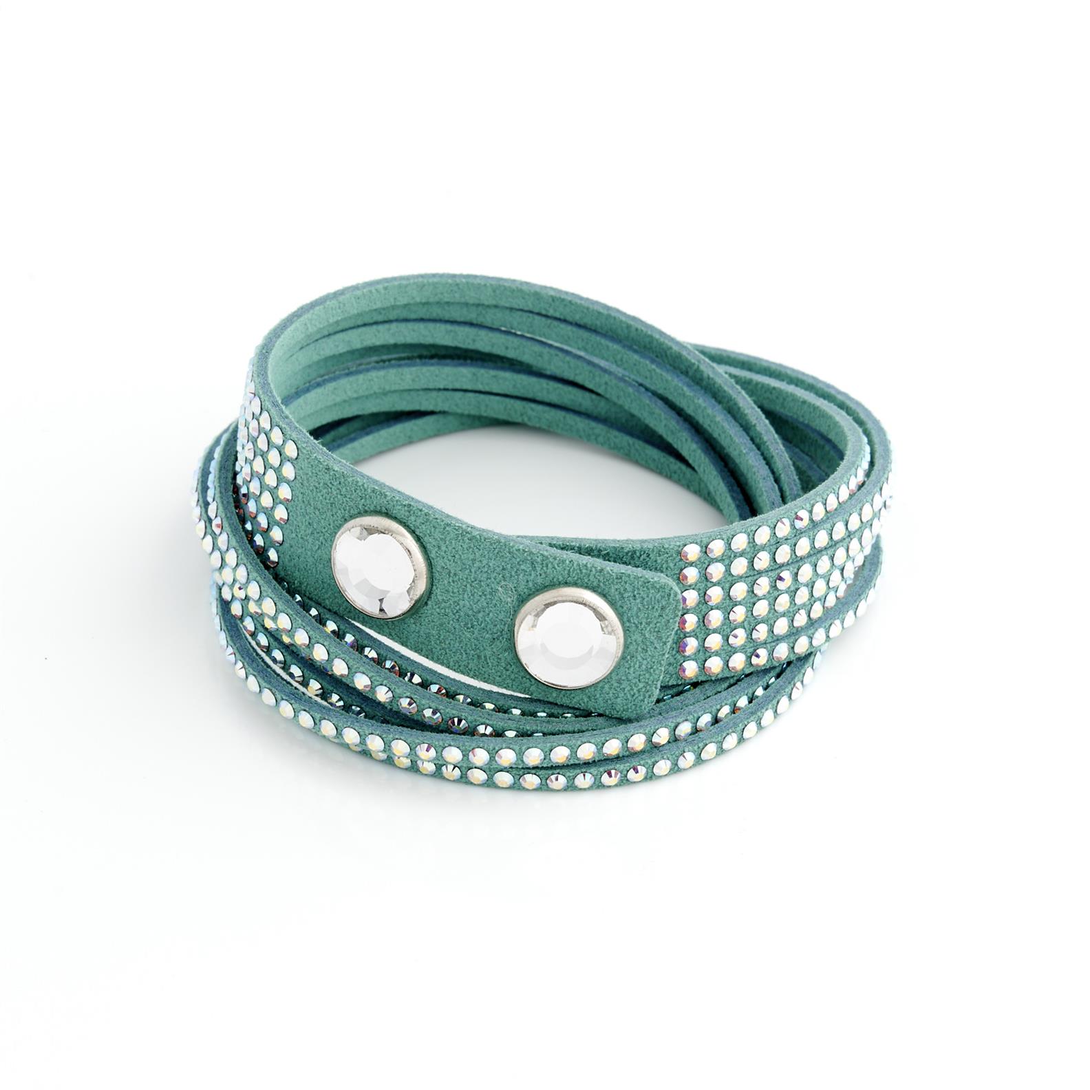 SWAROVSKI, A GREEN LEATHER DOUBLE BRACELET, 36CM, ACCOMPANIED BY A SWAROVSKI BOX