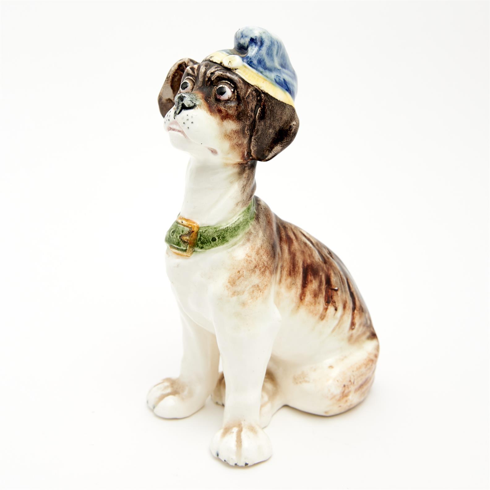 A CONTINENTAL PORCELIAN DOG (SMALL CHIP TO EAR) H.17CM, LEONARD JOEL DELIVERY SIZE: SMALL