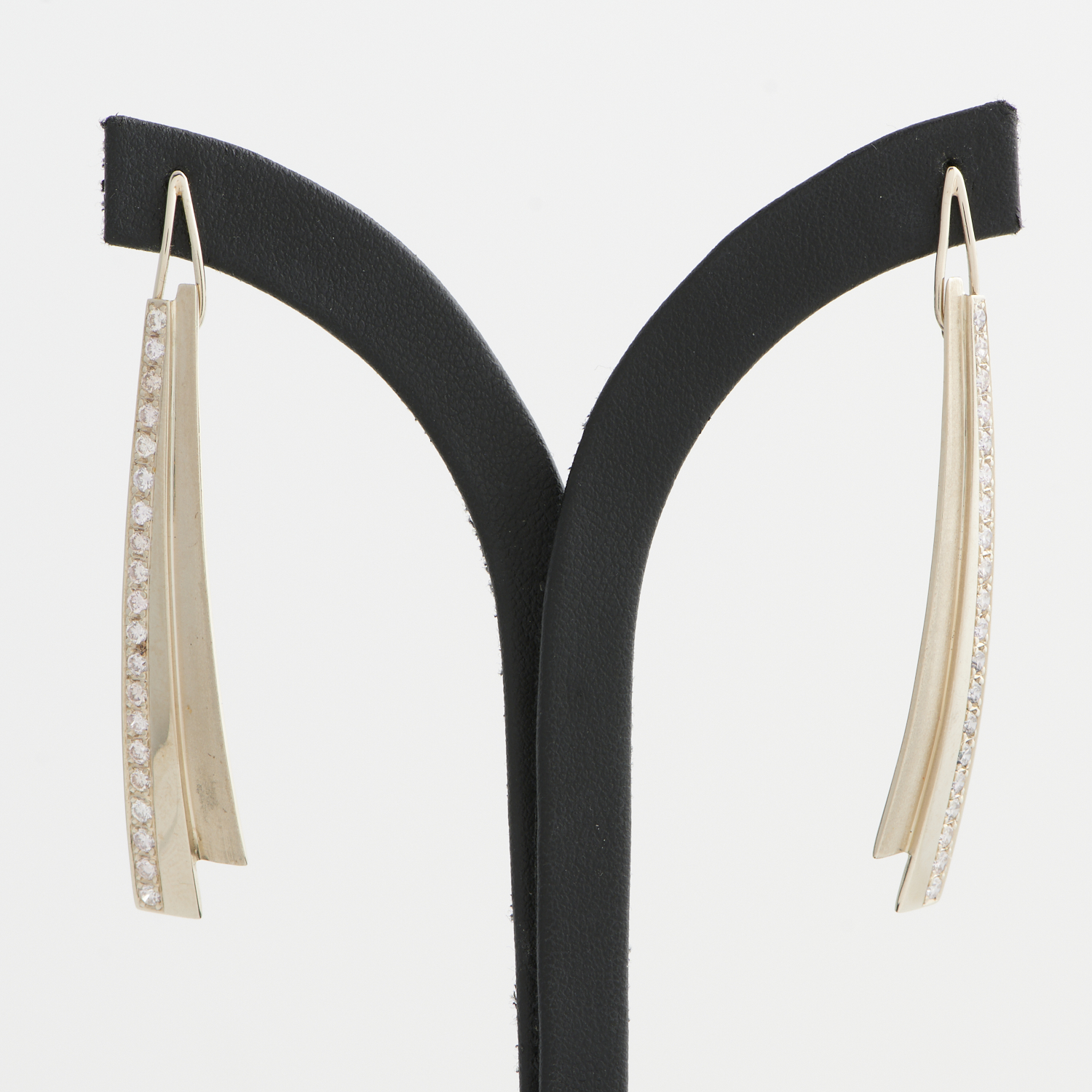 A PAIR OF DIAMOND EARRINGS IN 14CT TWO-TONE GOLD, LENGTH 65MM, 9.4GMS