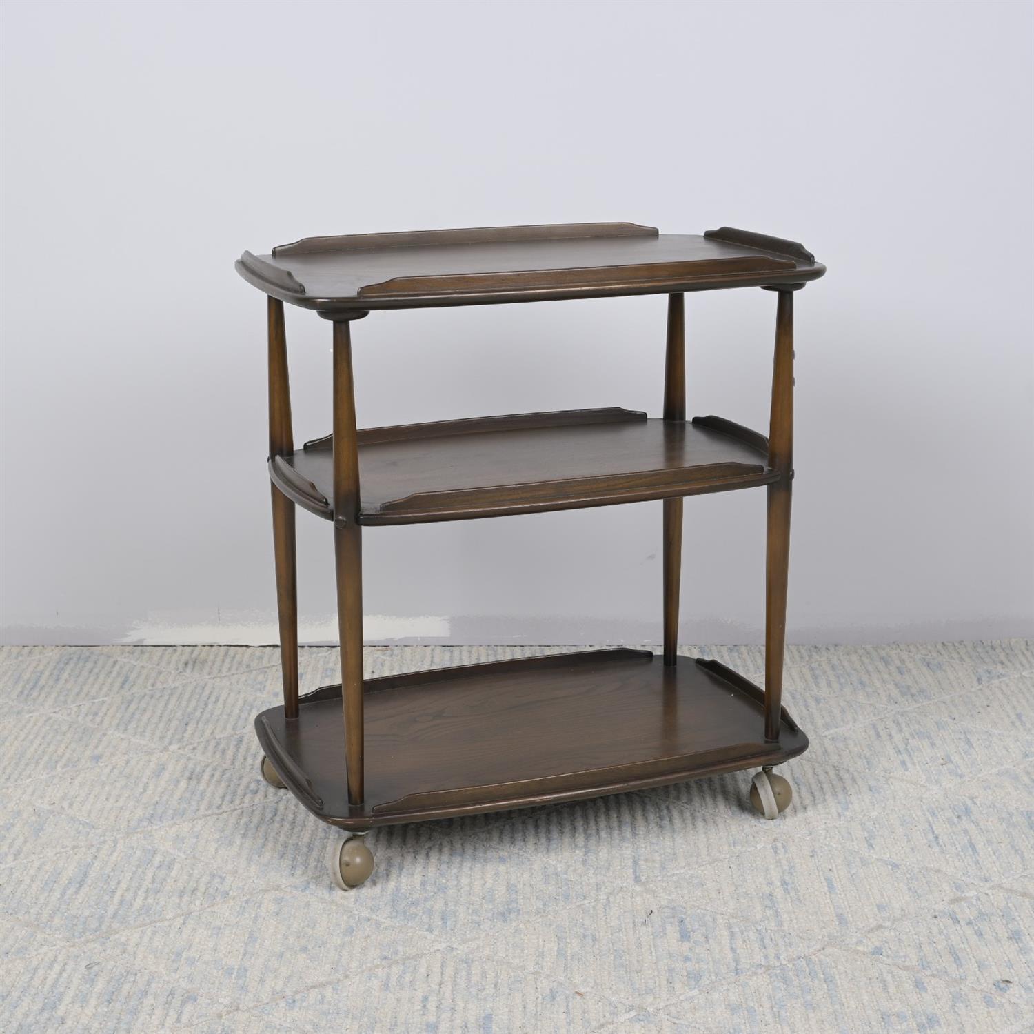 A THREE TIER BAR TROLLEY FOR ERCOL (78H X 72W X 47D CM) (LEONARD JOEL DELIVERY: LARGE)