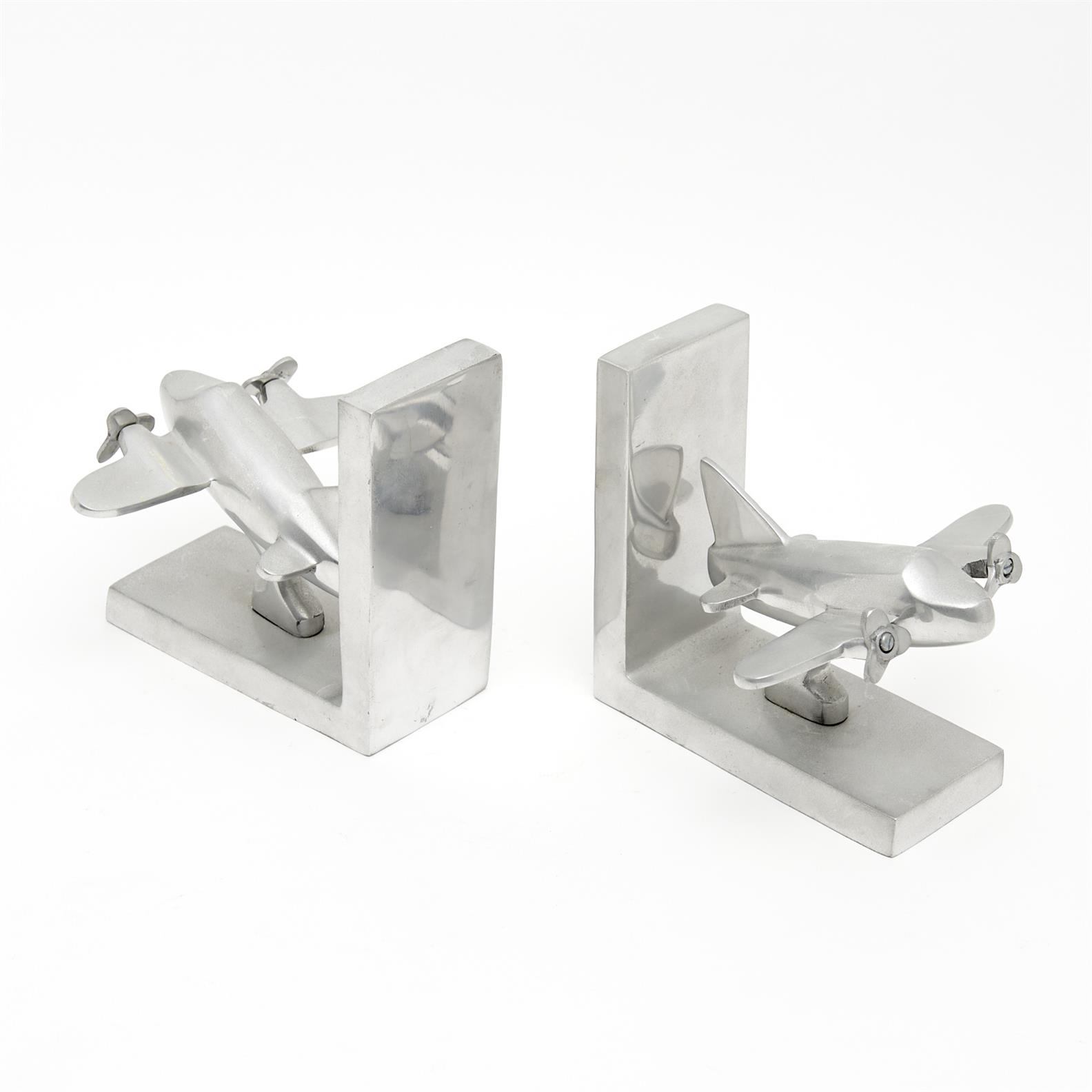 A PAIR OF CAST METAL AEROPLANE-FORM BOOKENDS L.17CM, LEONARD JOEL DELIVERY SIZE: SMALL