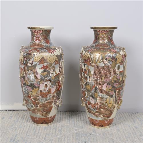 A PAIR OF SATSUMA VASES (60H X 26D CM) (LEONARD JOEL DELIVERY SIZE: LARGE)