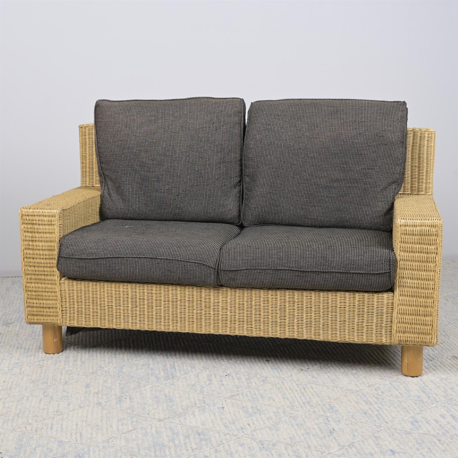 AN OUTDOOR CANE COUCH BY GARY MASTERS (98H X 152W X 74D CM) (LEONARD JOEL DELIVERY:X-LARGE)