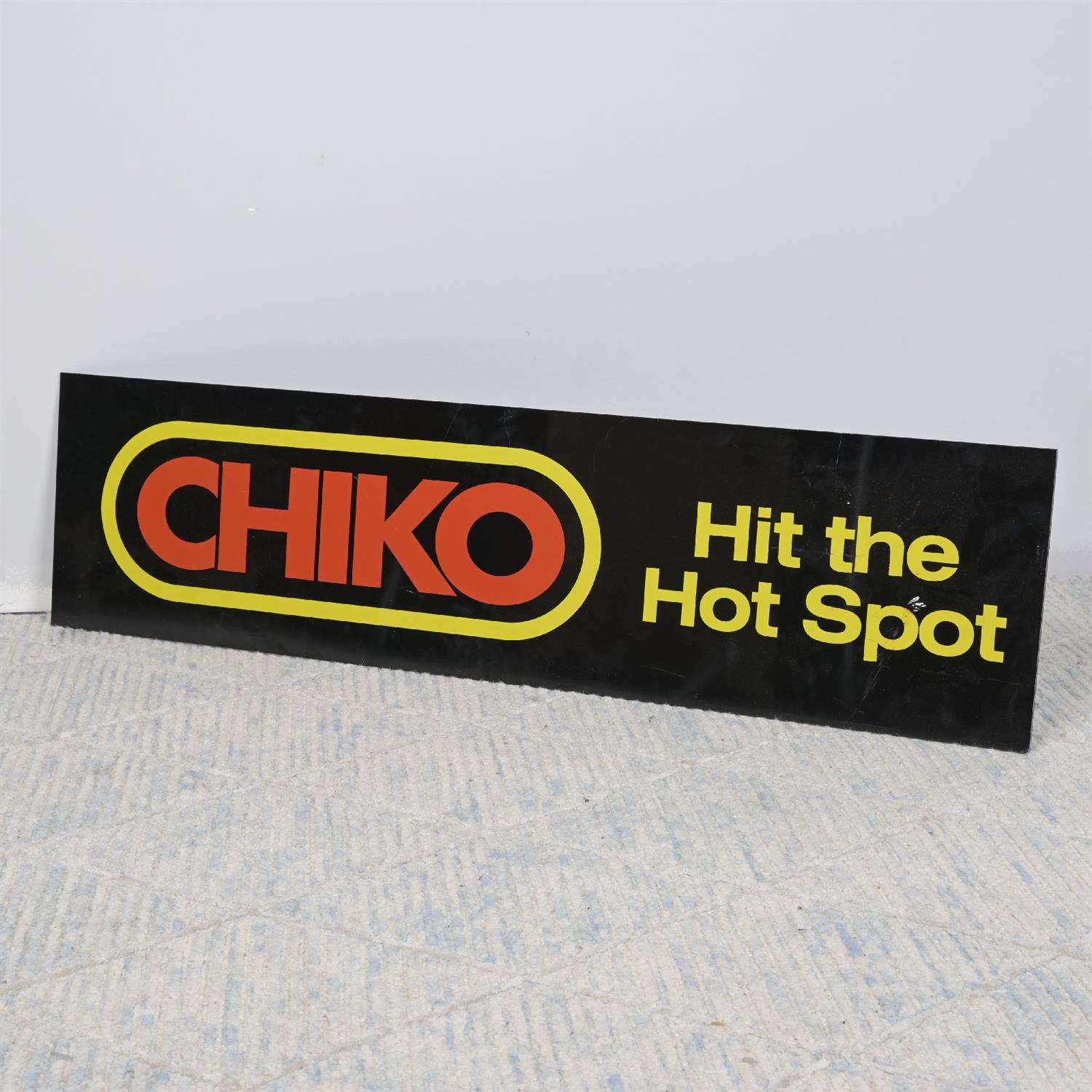 A TIN CHIKO ADVERTISING SIGN (32H X 122W CM) (LEONARD JOEL DELIVERY: LARGE)
