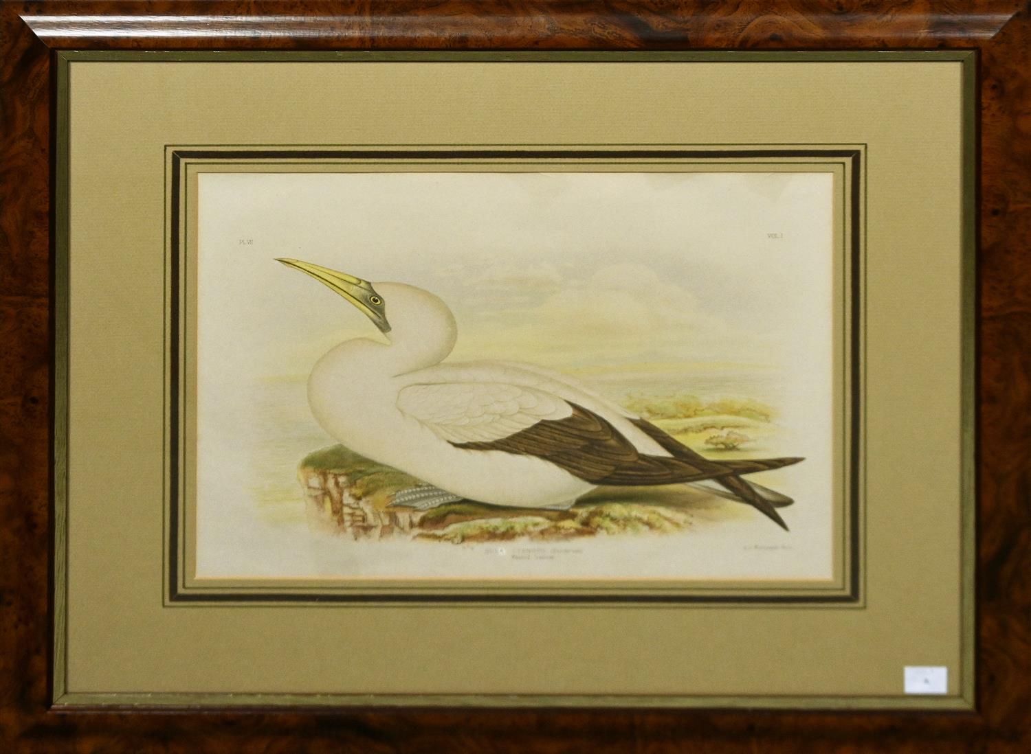 G. J. BROINOWSKI, SULA CYANOPS (SUNDERVALL) MASKED GANNET, LITHOGRAPH, ARTIST NAME AND TITLE INSCRIBED IN PLATE, 19.5 X 33CM, FRAME SIZE: 47.5 X 58CM