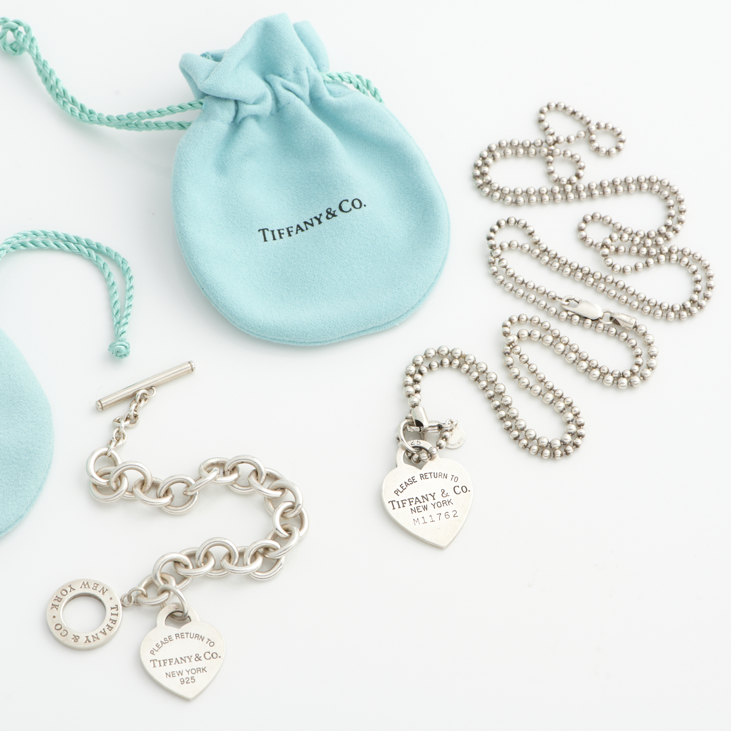 TIFFANY & CO. A RETURN TO TIFFANY NECKLACE AND BRACELET, BOTH IN STERLING SILVER, EACH ACCOMPANIED BY A POUCH AND BOX