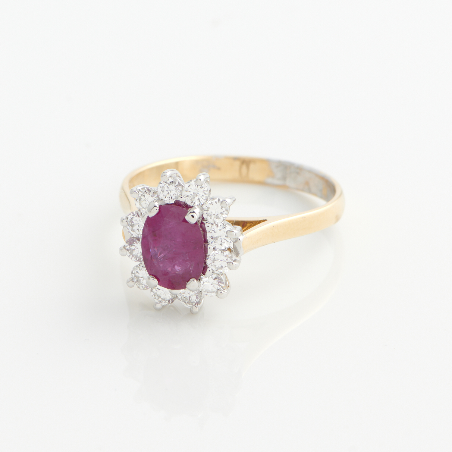 A MOZAMBIQUE RUBY AND DIAMOND RING IN 18CT TWO-TONE GOLD, THE RUBY WEIGHING 1.04CTS, THE DIAMONDS TOTALLING 0.42CTS (F/VS), ACCOMPANIED BY A GEMSTONE CERTIFICATE
