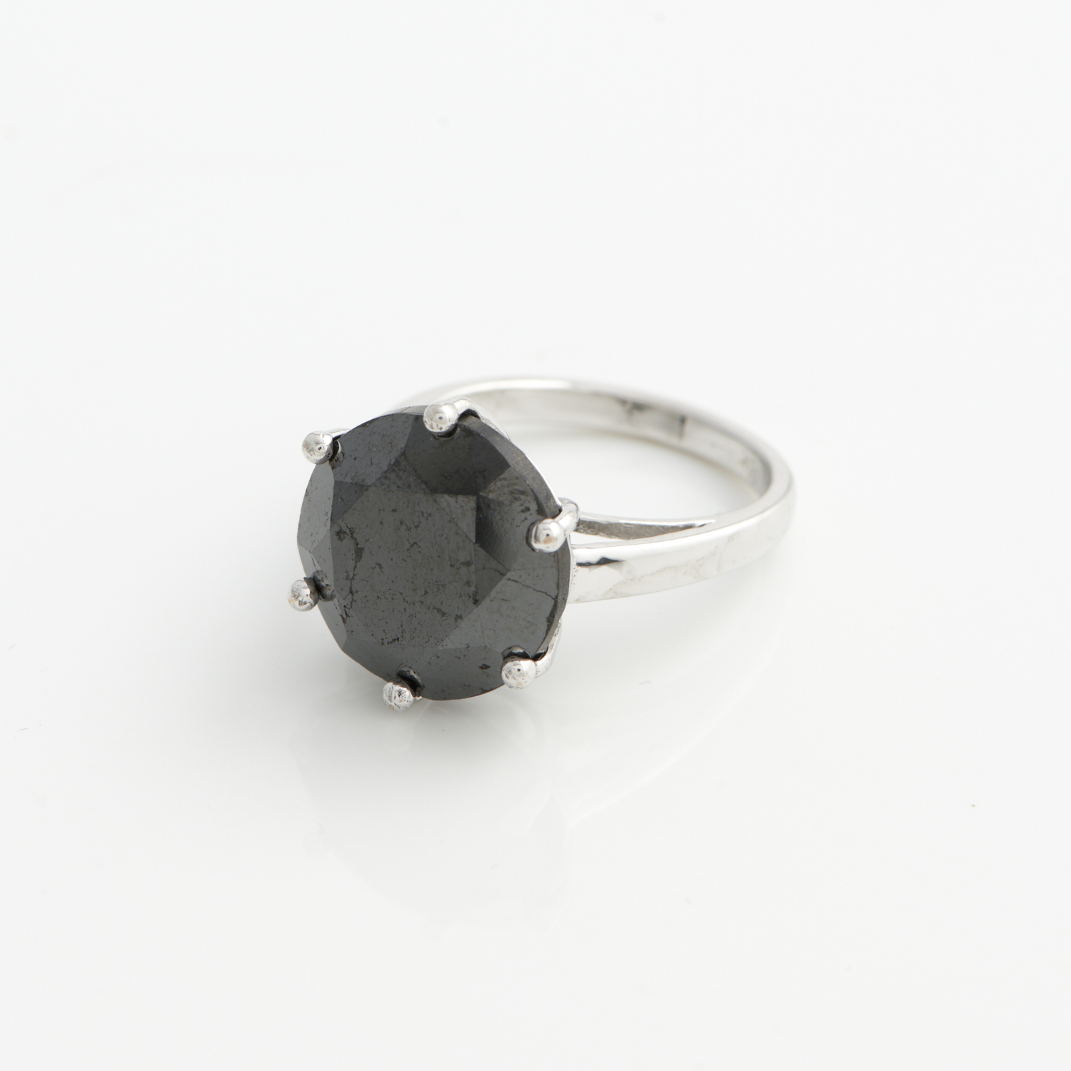 A BLACK DIAMOND RING IN 18CT WHITE GOLD, THE DIAMOND WEIGHING 16.75CTS, SIZE P