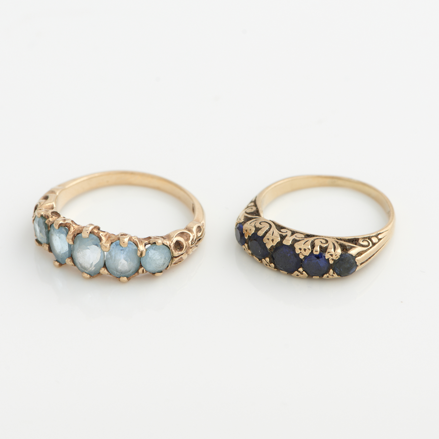 A SAPPHIRE RING IN 9CT GOLD, SIZE I, TOGETHER WITH A TOPAZ RING IN 9CT GOLD, SIZE L, 4.7GMS
