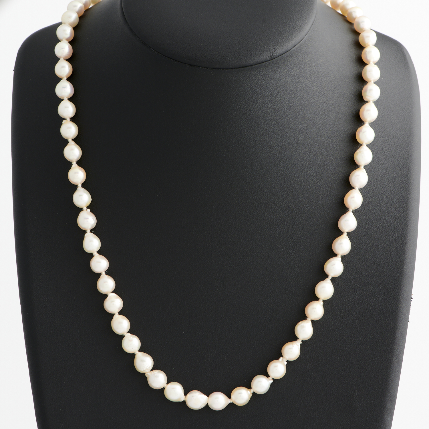 A STRAND OF CULTURED PEARLS, TO A CLASP IN 14CT GOLD, 520MM