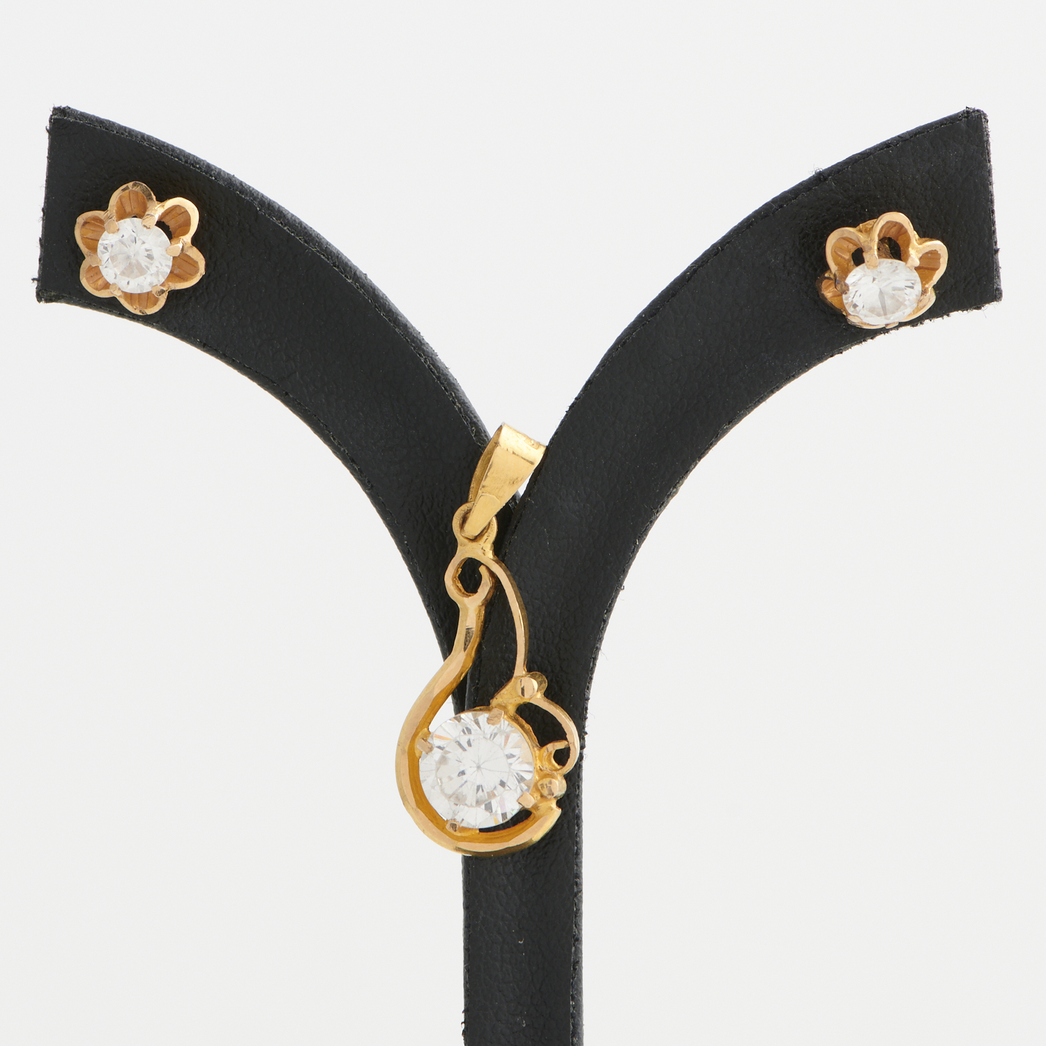 A WHITE STONE JEWELLERY SUITE IN 18CT GOLD, COMPRISING A PAIR OF EARRINGS TO POST AND BUTTERFLY FITTINGS, TOGETHER WITH A PENDANT, 4.2GMS