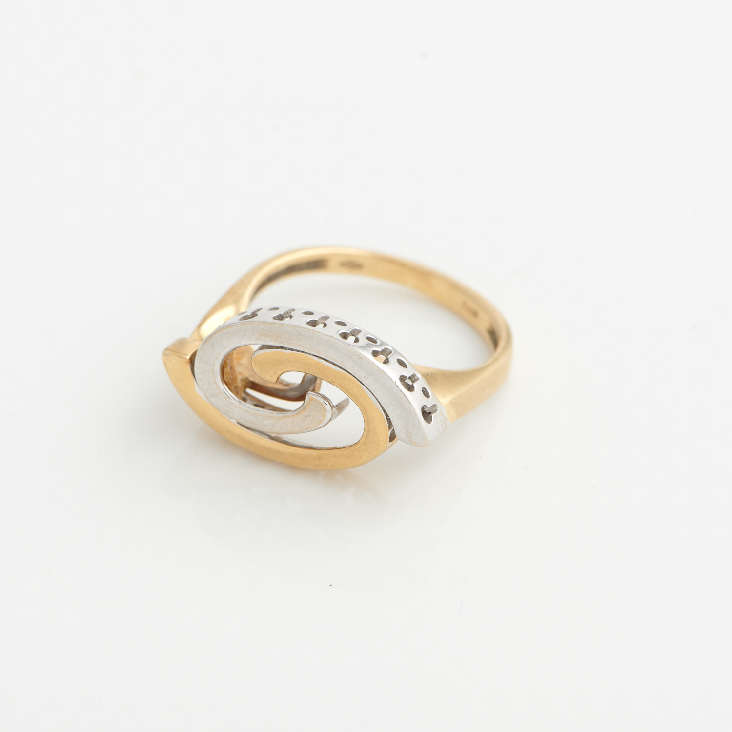 A RING IN 18CT TWO-TONE GOLD, SIZE O, 4.9GMS