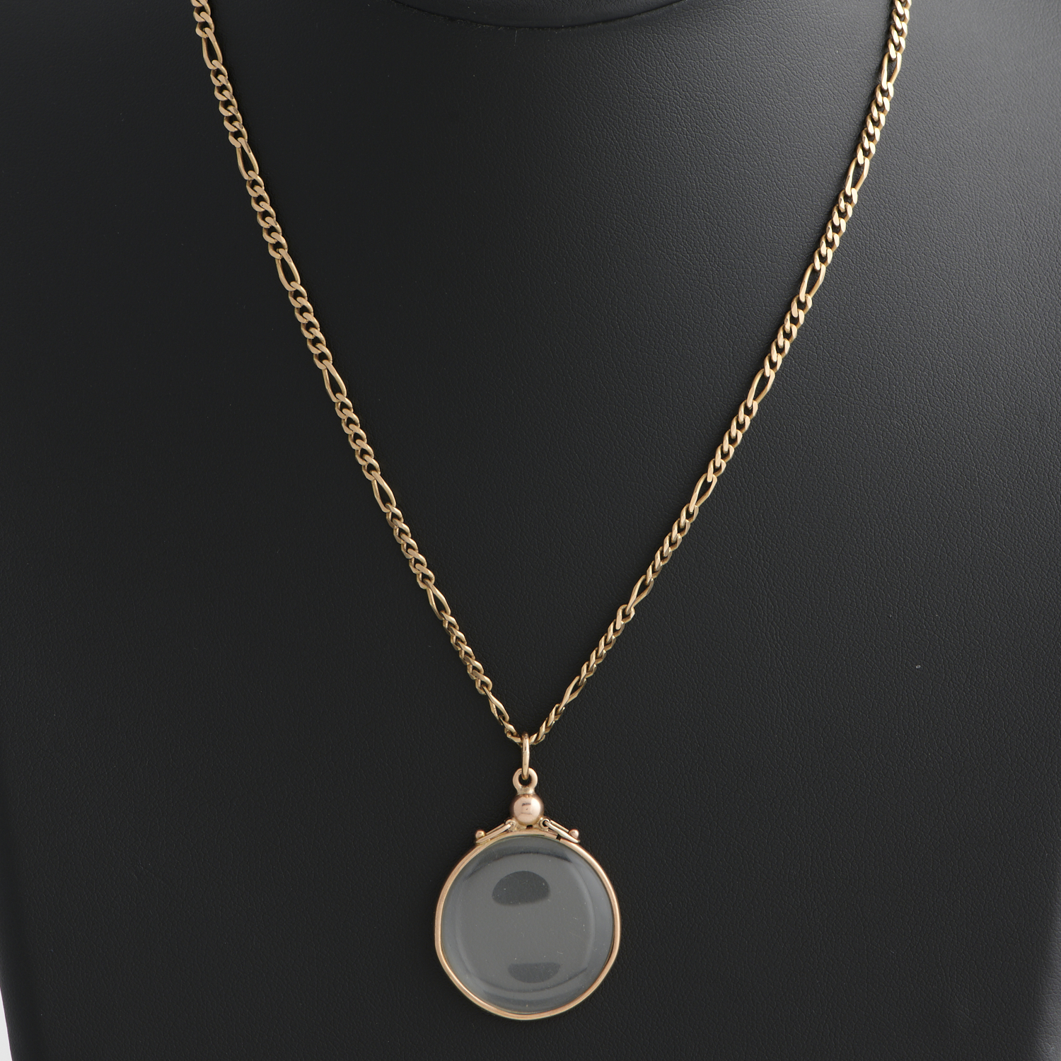 A GLASS LOCKET NECKLACE IN 9CT GOLD, THE LOCKET MEASURING 25MM, 620MM, 12.8GMS