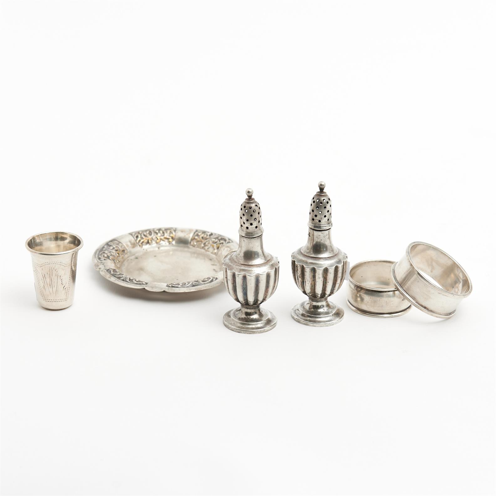 A COLLECTION OF SILVER OBJECTS INCLUDING 800 AND RUSSIAN 84 SILVER 158G H.9CM, LEONARD JOEL DELIVERY SIZE: SMALL