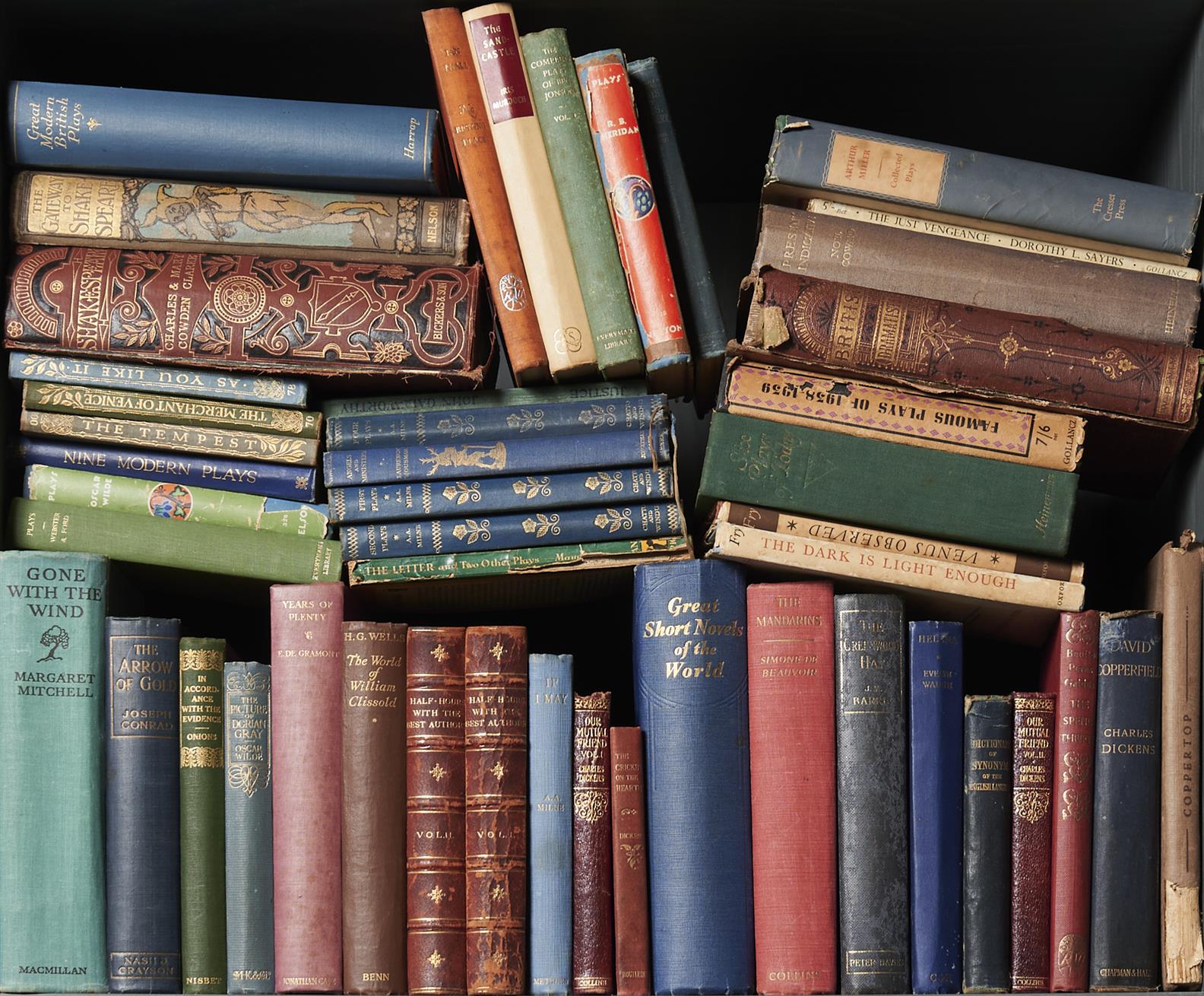 A SHELF OF BINDINGS COMPRISING CLASSIC PLAYS AND NOVELS, LEONARD JOEL DELIVERY SIZE: LARGE