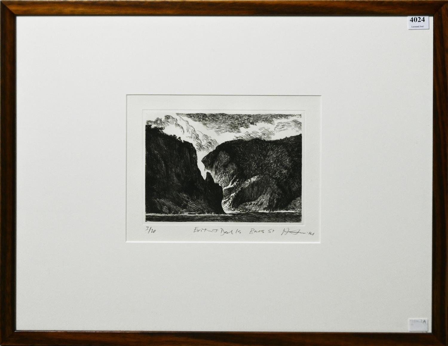 § RICK AMOR, ERITH AND DEAL IS., BASS STRAIT 2014, ETCHING ED. 3/20, SIGNED, TITLED, DATED AND EDITIONED BELOW IMAGE, 14 X 19CM, FRAME SIZE: 45 X 54CM