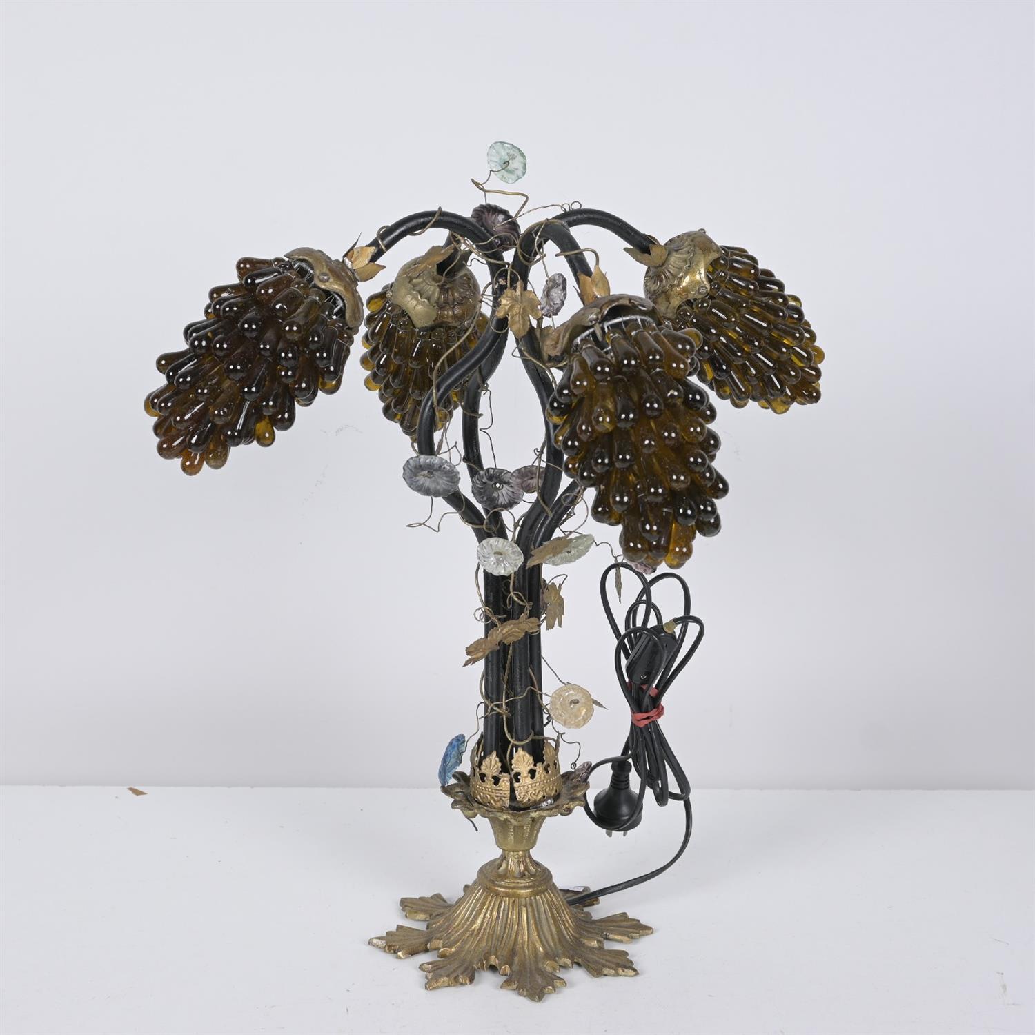 AN ART NOUVEAU STYLE BRASS LAMP WITH GLASS GRAPE LIGHT SHADES (60H CM) (LEONARD JOEL DELIVERY: MEDIUM)