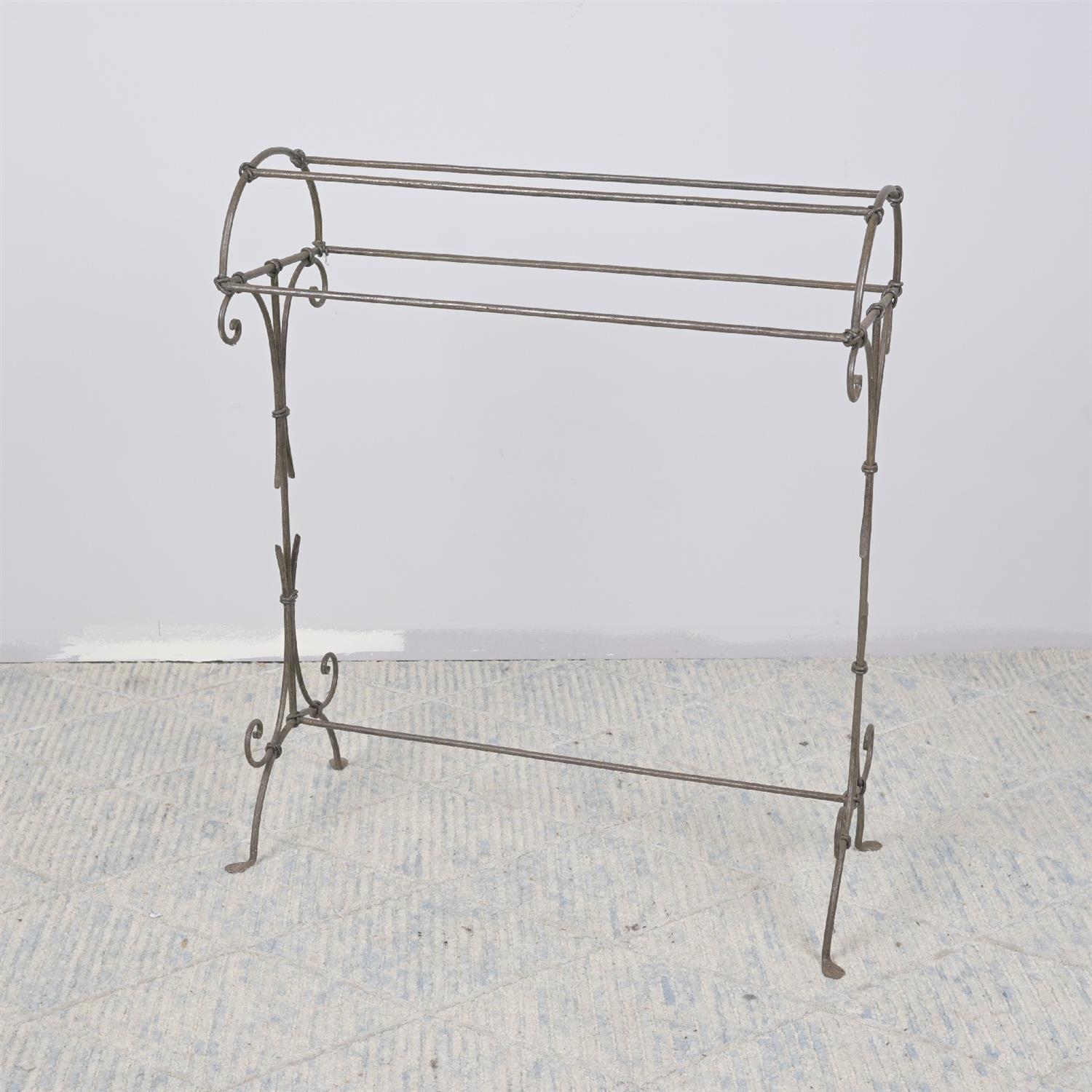 A FRENCH STYLE WROUGHT METAL TOWEL STAND (90H X 76W X 30D CM) (LEONARD JOEL DELIVERY: LARGE)