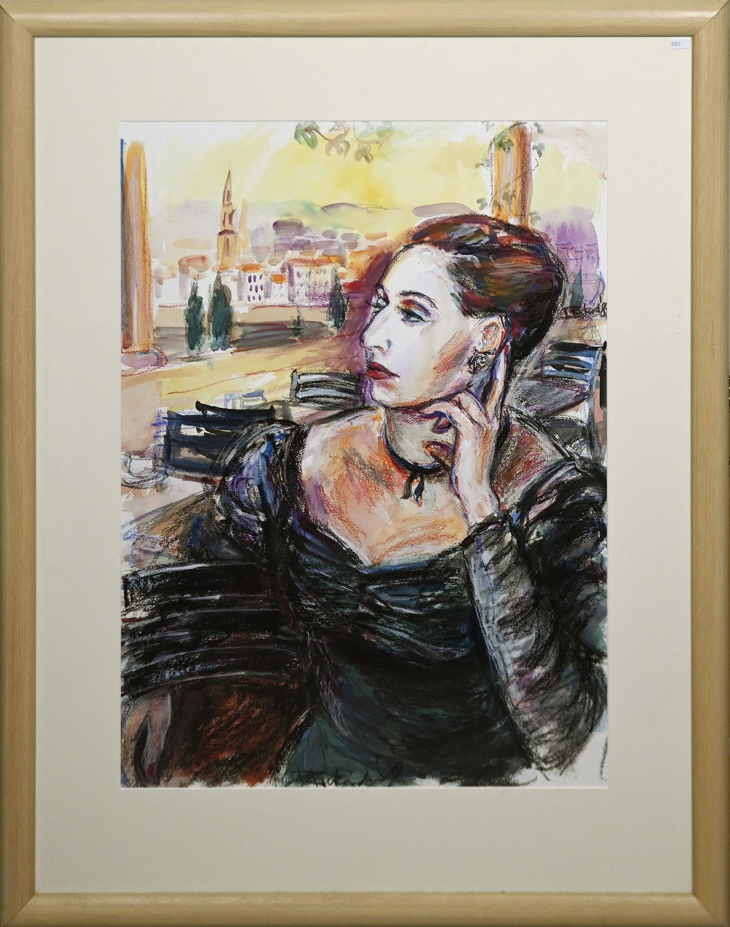 SIGNED P. RICKARD, (PORTRAIT OF A LADY) 1989, WATERCOLOUR, GOUACHE AND PASTEL ON PAPER, SIGNED AND DATED LOWER CENTRE, 74 X 53CM, FRAME SIZE: 104 X 81CM
