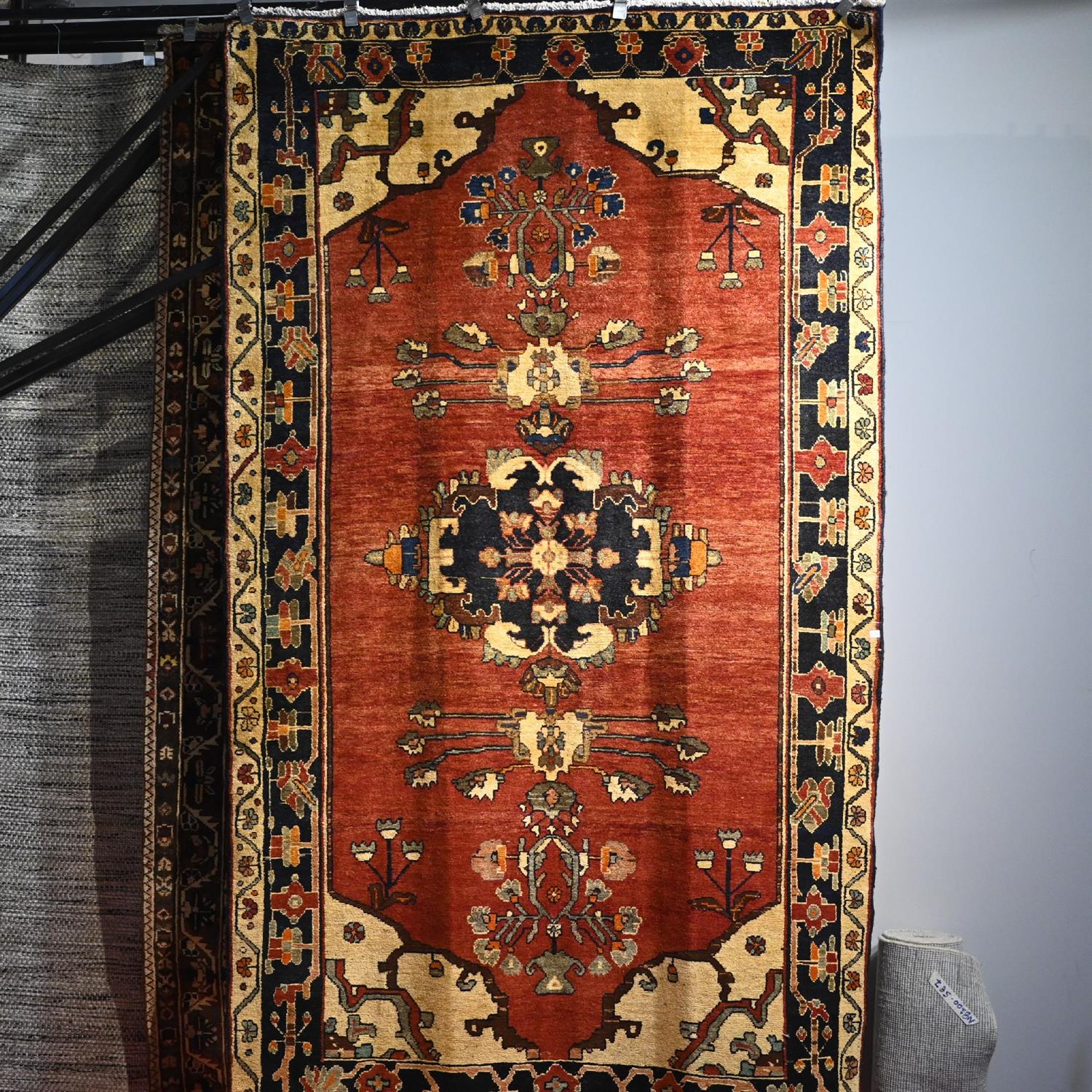 A LARGE NOMADIC BAKHTIARI ARMANI WEAVE CARPET, THE 100% WOOLLEN PILE WITH A SHEEN, HAND-KNOTTED IN CENTRAL LURESTAN PROVINCE BY BAKHTIARI TRIBE WITH ALL NATURAL DYES. ORIGIN: PERSIA (290 X 172 CM) (LEONARD JOEL DELIVERY SIZE: X-LARGE)