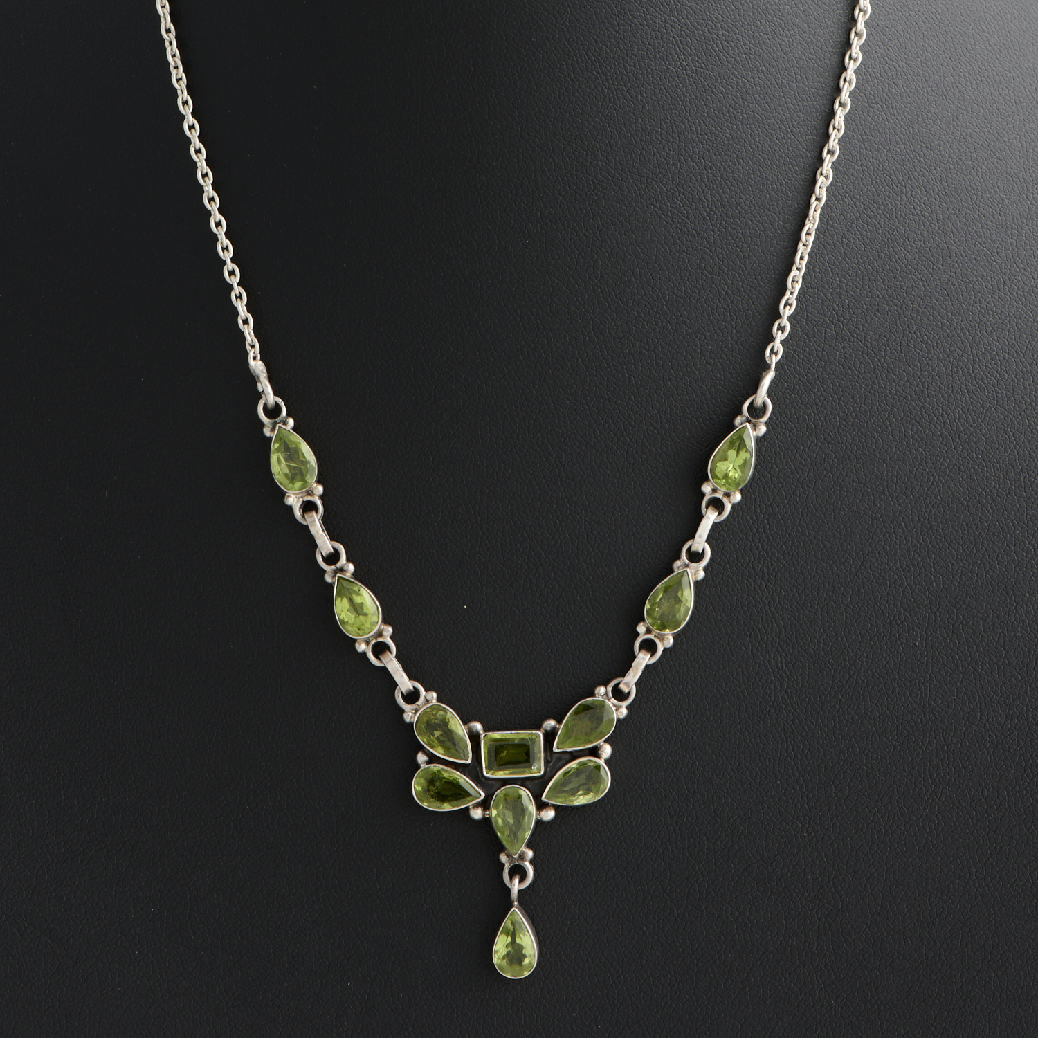 A VINTAGE PERIDOT SET NECKLACE IN SILVER, 440MM