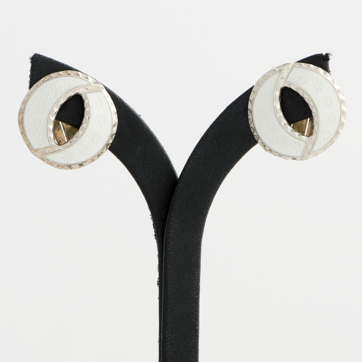 A PAIR OF DANISH ENAMELLED EARRINGS IN SILVER, TO CLIP FITTINGS, DIAMETER 20MM