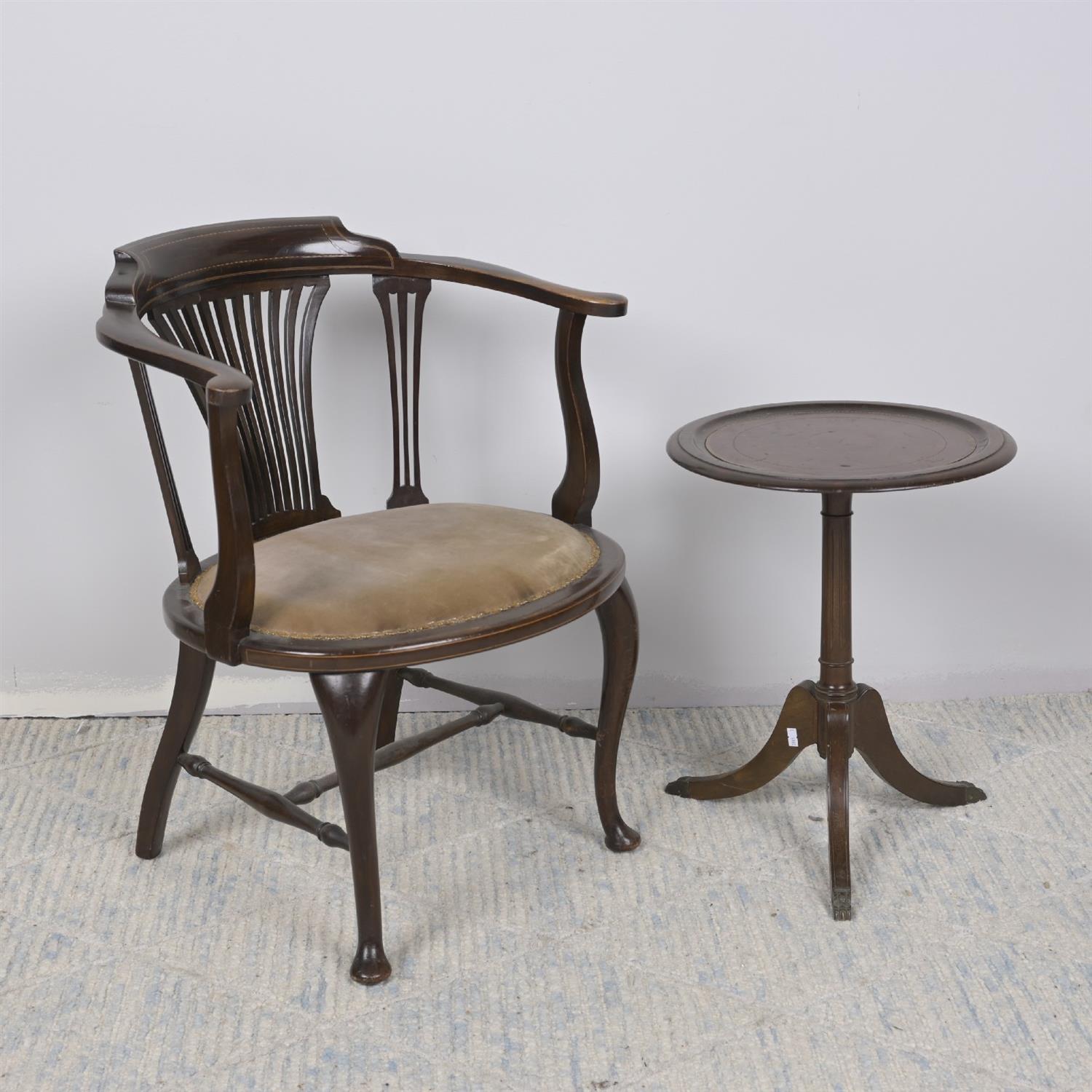 AN ANTIQUE INLAID SIDE CHAIR WITH WINE TABLE IN SIMILAR MANNER (70H X 58W X 45D CM) (LEONARD JOEL DELIVERY: LARGE)