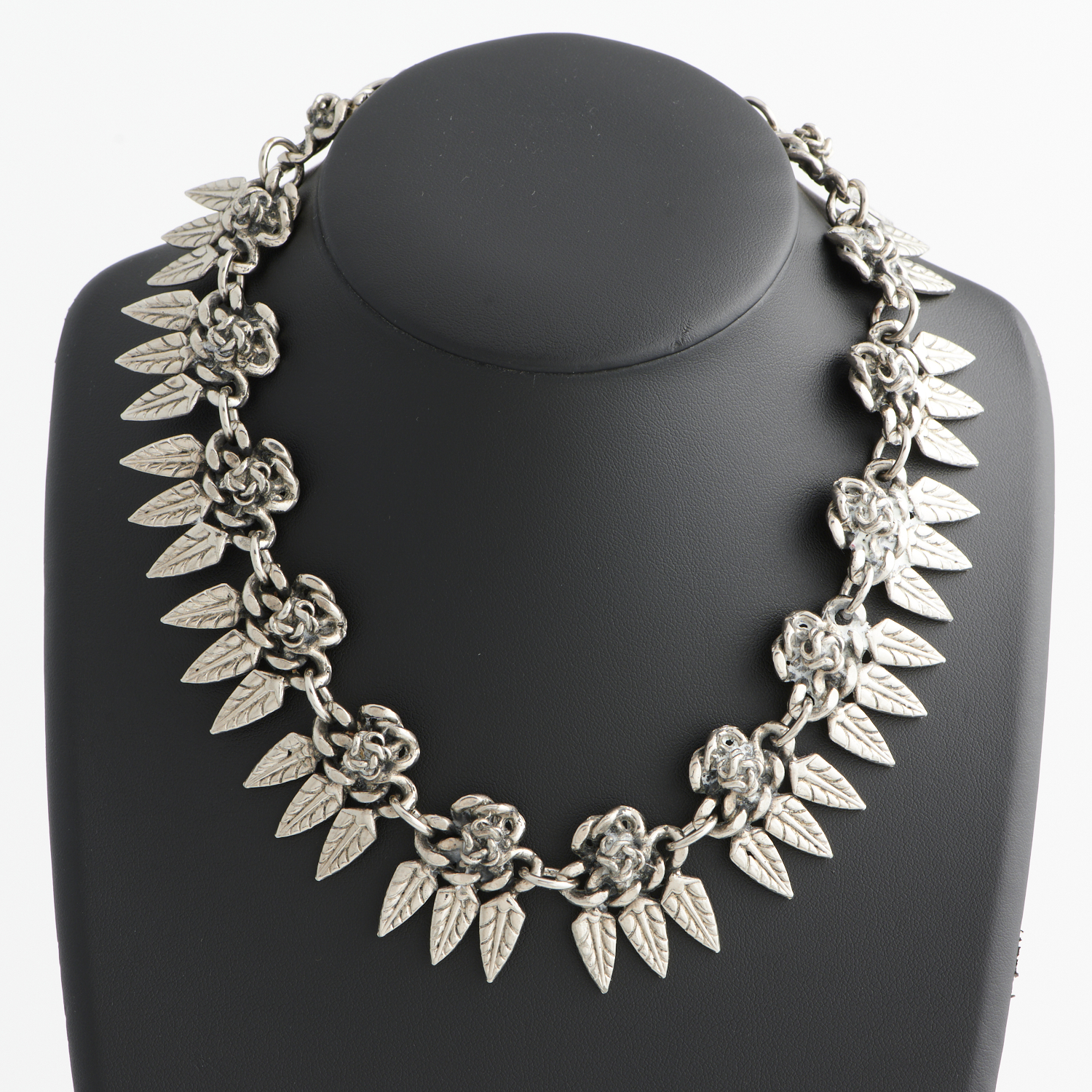 A FLORAL NECKLACE IN BASE METAL, LENGTH ADJUSTABLE