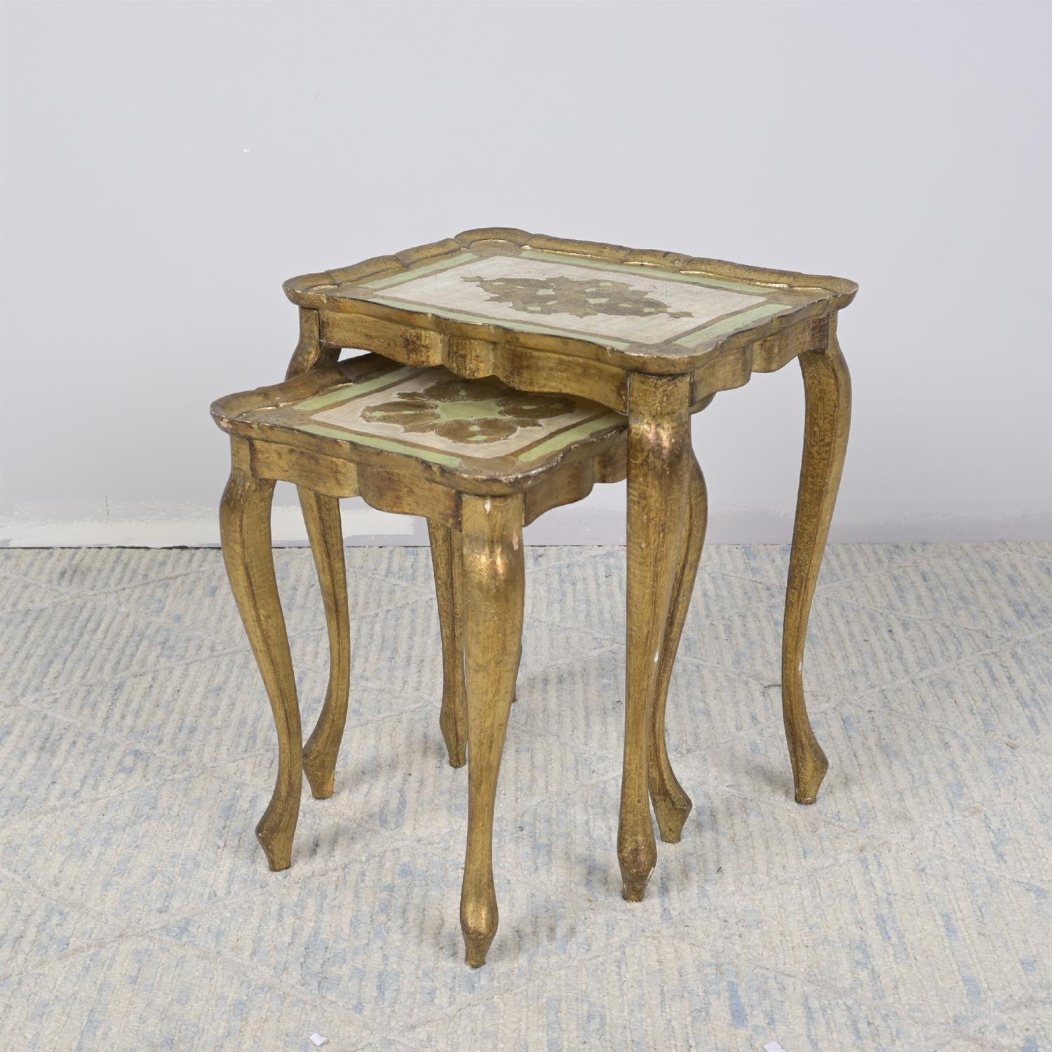 A NEST OF TWO ITALIAN FLORENTINE STYLE GILT PAINTED SIDE TABLES (52H X 44W X 34D CM) (LEONARD JOEL DELIVERY: MEDIUM)