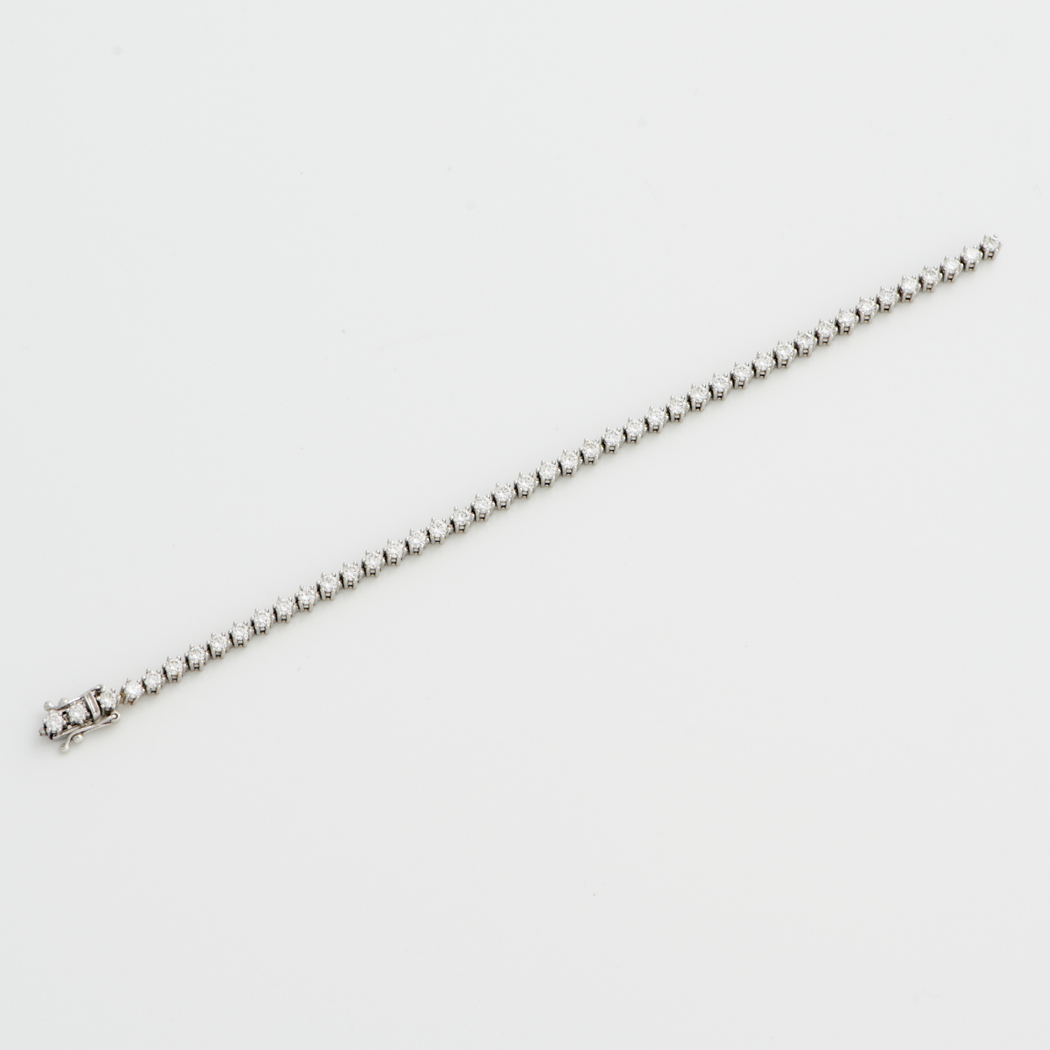 A DIAMOND LINE BRACELET IN 18CT WHITE GOLD, 165MM, 11.8GMS, A/F (LINK BROKEN)