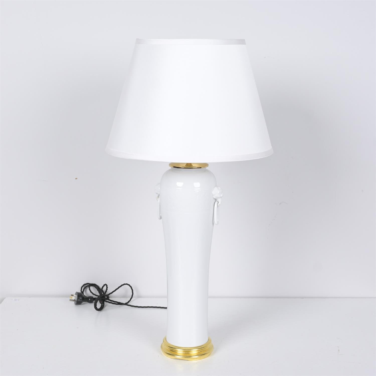 A CHINESE STYLE WHITE CERAMIC TABLE LAMP (80H CM) (LEONARD JOEL DELIVERY: MEDIUM)
