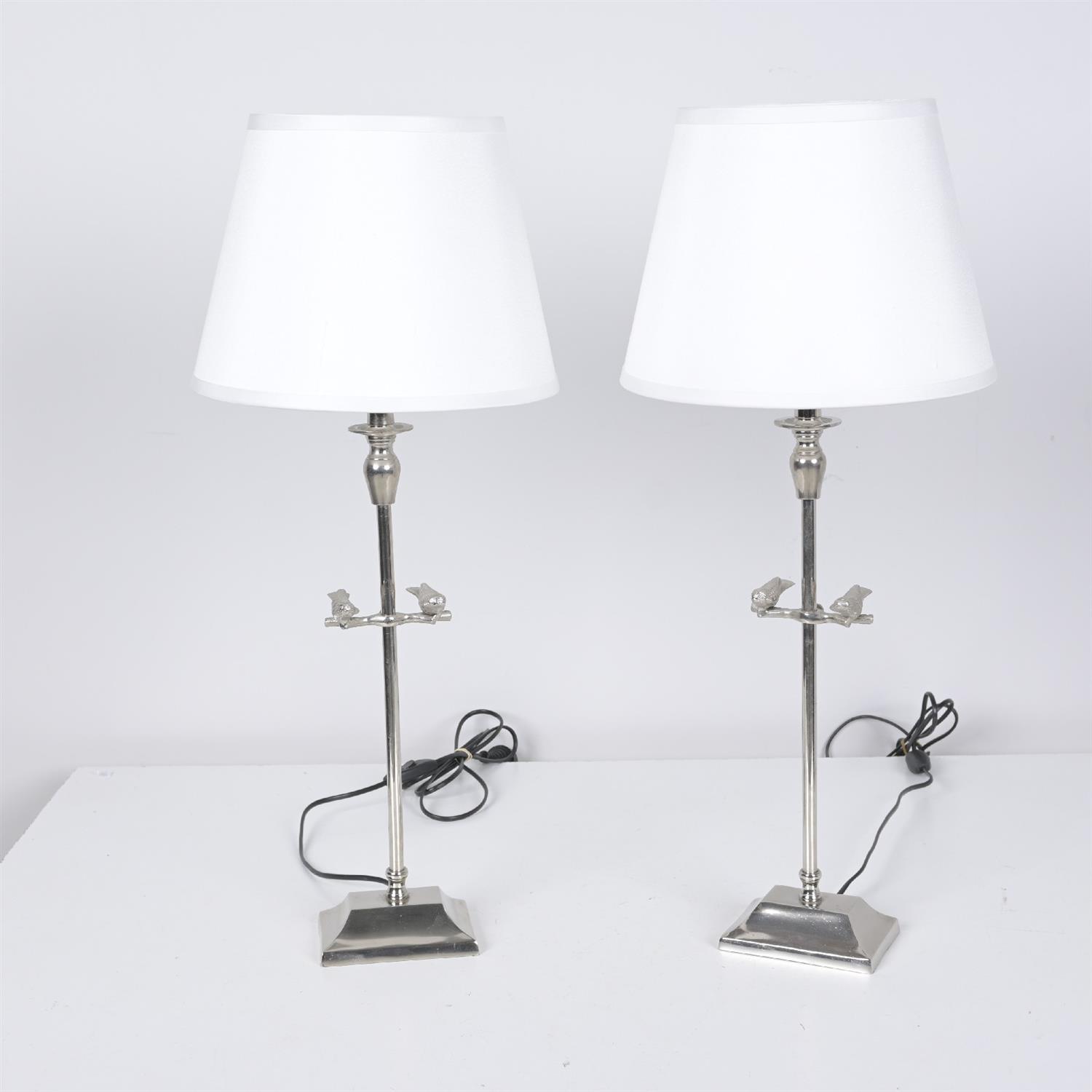 A PAIR OF CHROME BIRD ADORNED TABLE LAMPS (73H CM) (LEONARD JOEL DELIVERY: LARGE)