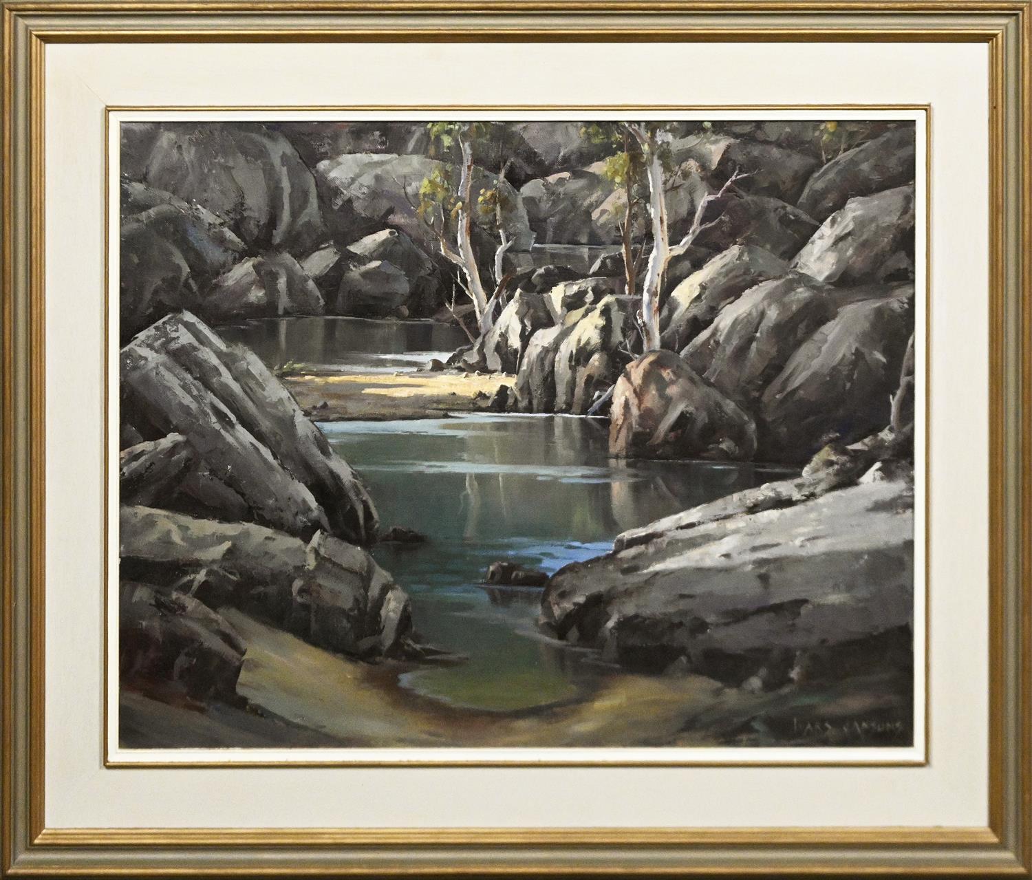 IVARS JANSONS, COOL RETREAT, N.T., OIL ON CANVASBOARD, SIGNED LOWER RIGHT, 45 X 60CM, FRAME SIZE: 64 X 80CM