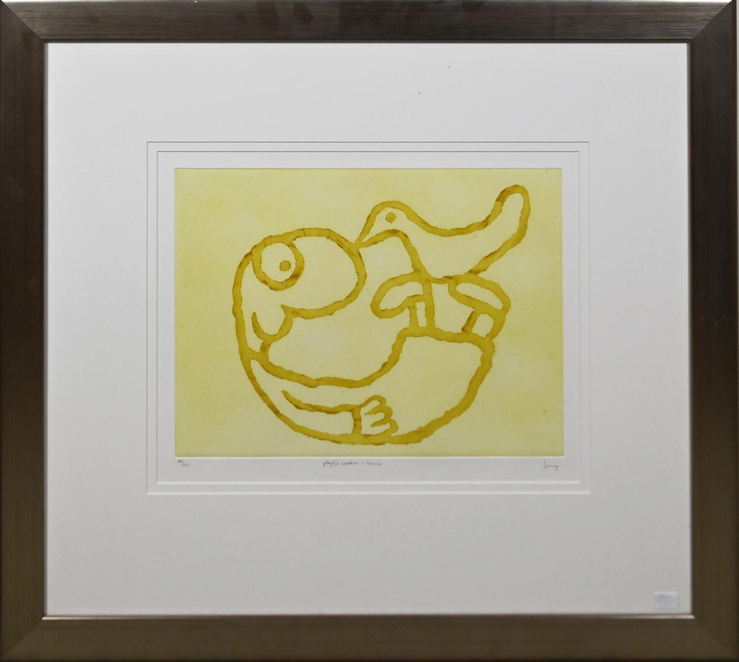 MICHAEL LEUING, PLAYFUL CREATURE - SIENNA, ETCHING ED. 34/125, SIGNED, DATED AND EDITIONED BELOW IMAGE, 29 X 39CM, FRAME SIZE 69 X 79.5CM
