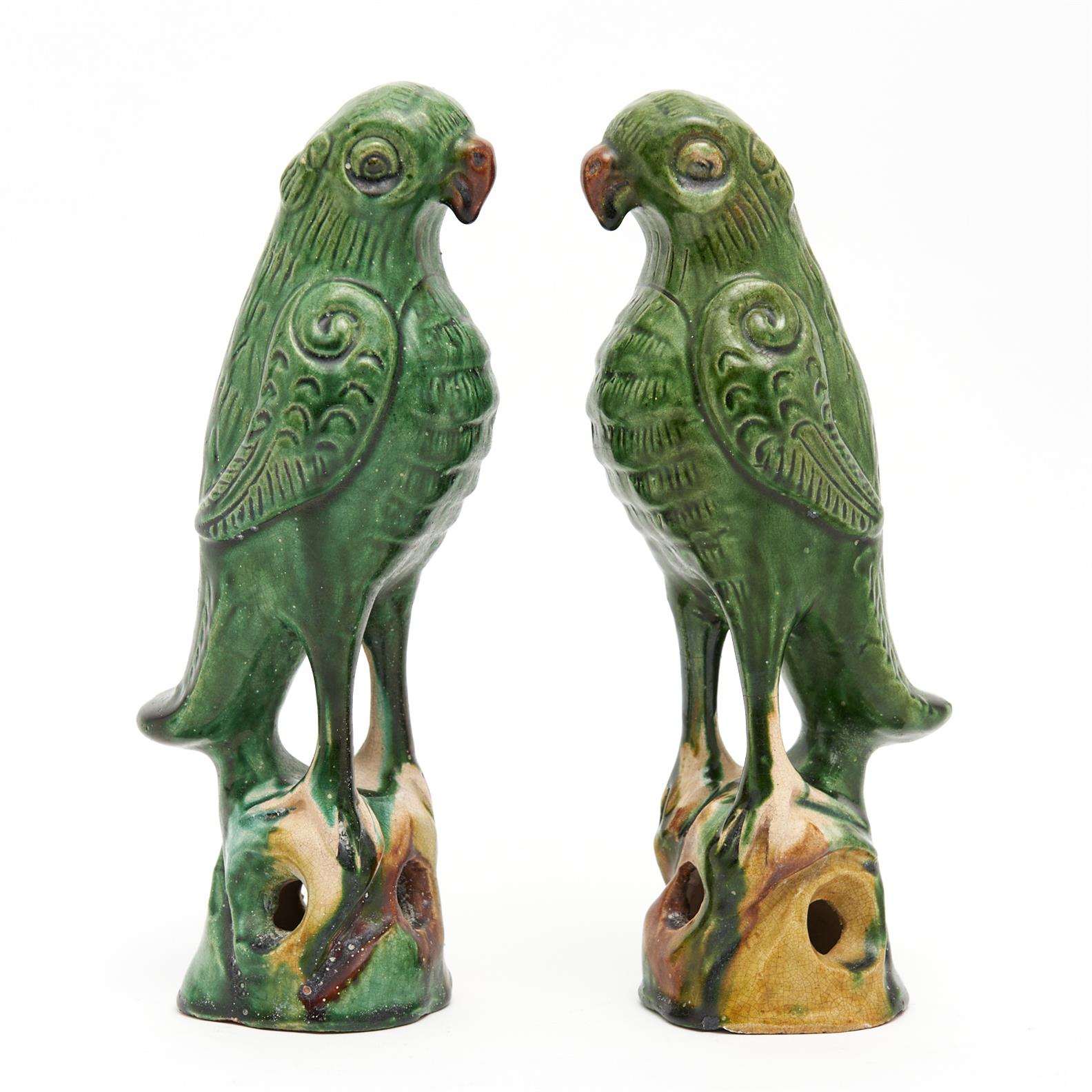 A PAIR OF CHINESE CERAMIC PARROT INCENSE BURNERS H.24CM (LARGEST), LEONARD JOEL DELIVERY SIZE: MEDIUM
