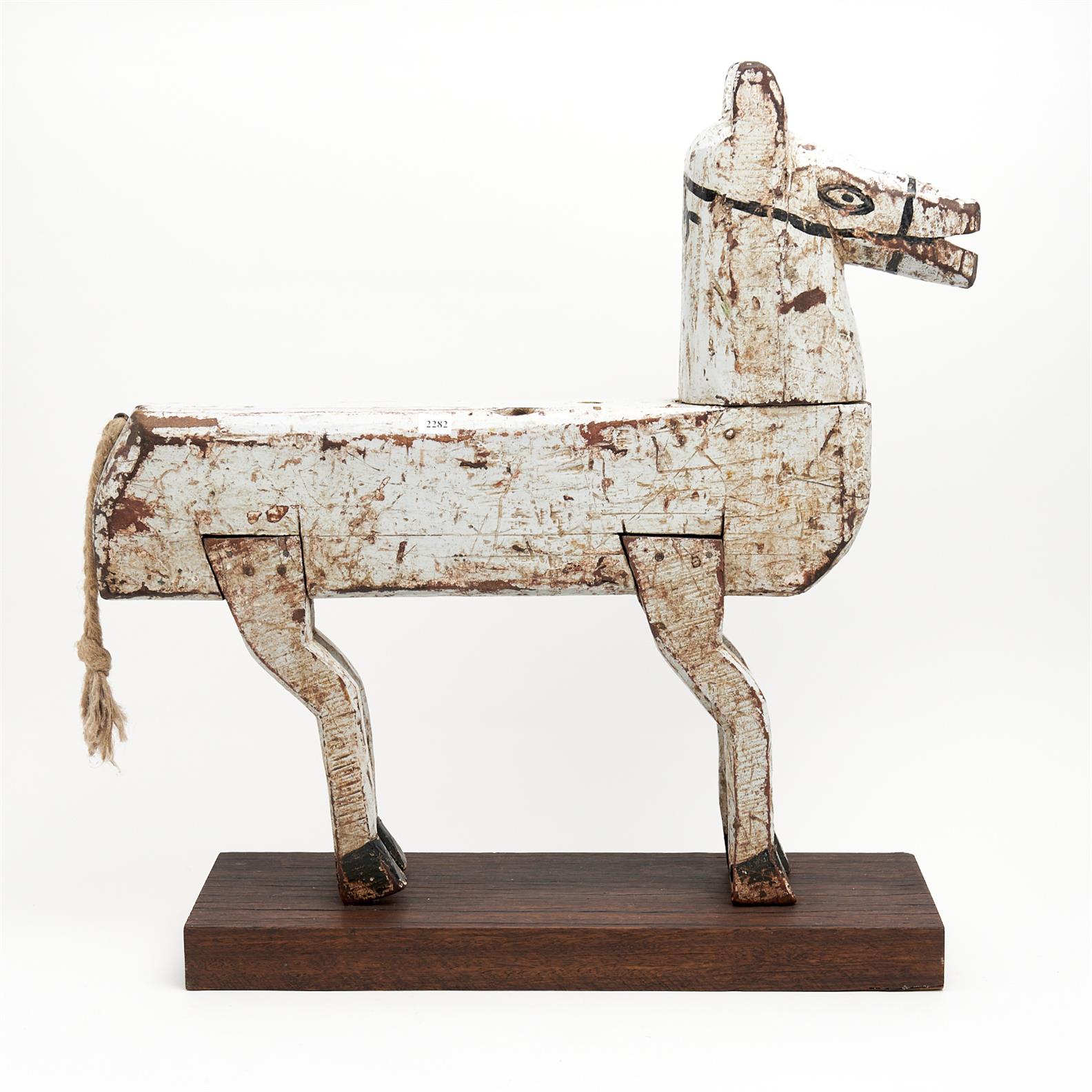 A RUSTIC PAINTED HARDWOOD PONY FIGURE H.70CM, LEONARD JOEL DELIVERY SIZE: LARGE