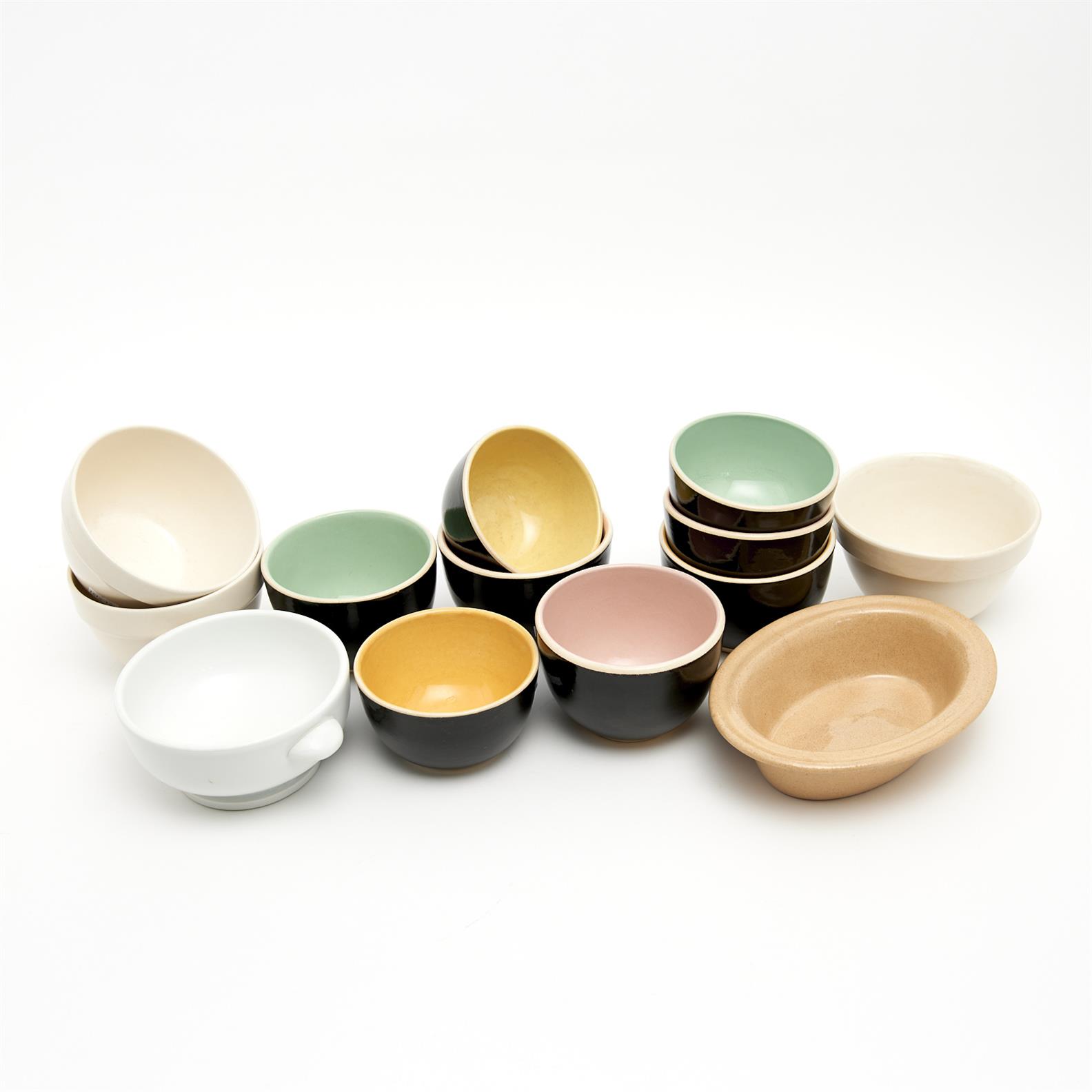 A COLLECTION OF EIGHT HOFFMAN RAMEKINS TOGETHER WITH FIVE OTHER BOWLS INCLUDING FOWLER WARE L.19.5CM (LARGEST), LEONARD JOEL DELIVERY SIZE: MEDIUM
