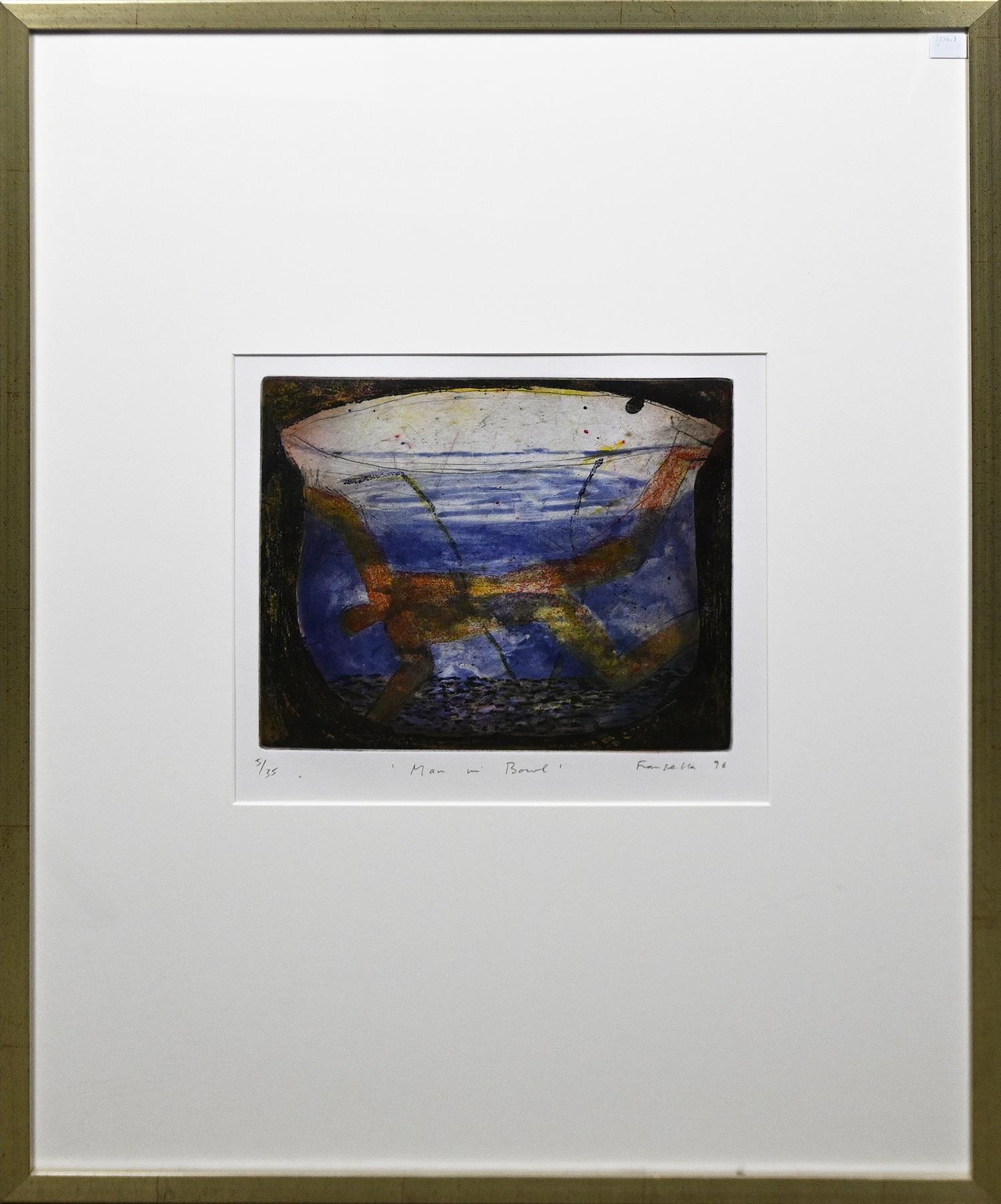 GRAHAM FRANSELLA, MAN IN BOLD 1996, ETCHING ED. 5/35, SIGNED, TITLED, DATED AND EDITIONED BELOW IMAGE, 25 X 29CM, FRAME SIZE: 82 X 62.5CM