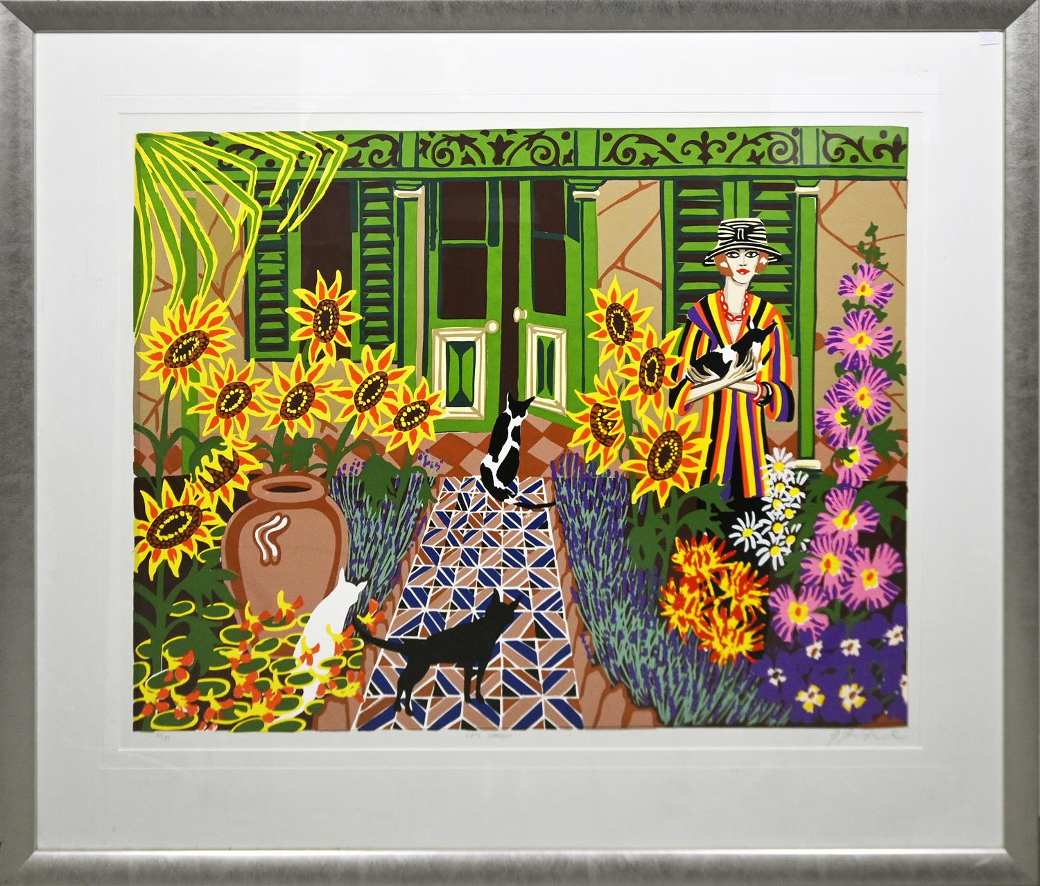 GREG IRVINE, CATS GARDEN, SCREENPRINT ED. 31/85, SIGNED, TITLED AND EDITIONED BELOW IMAGE, 68 X 88CM, FRAME SIZE: 100 X 118CM
