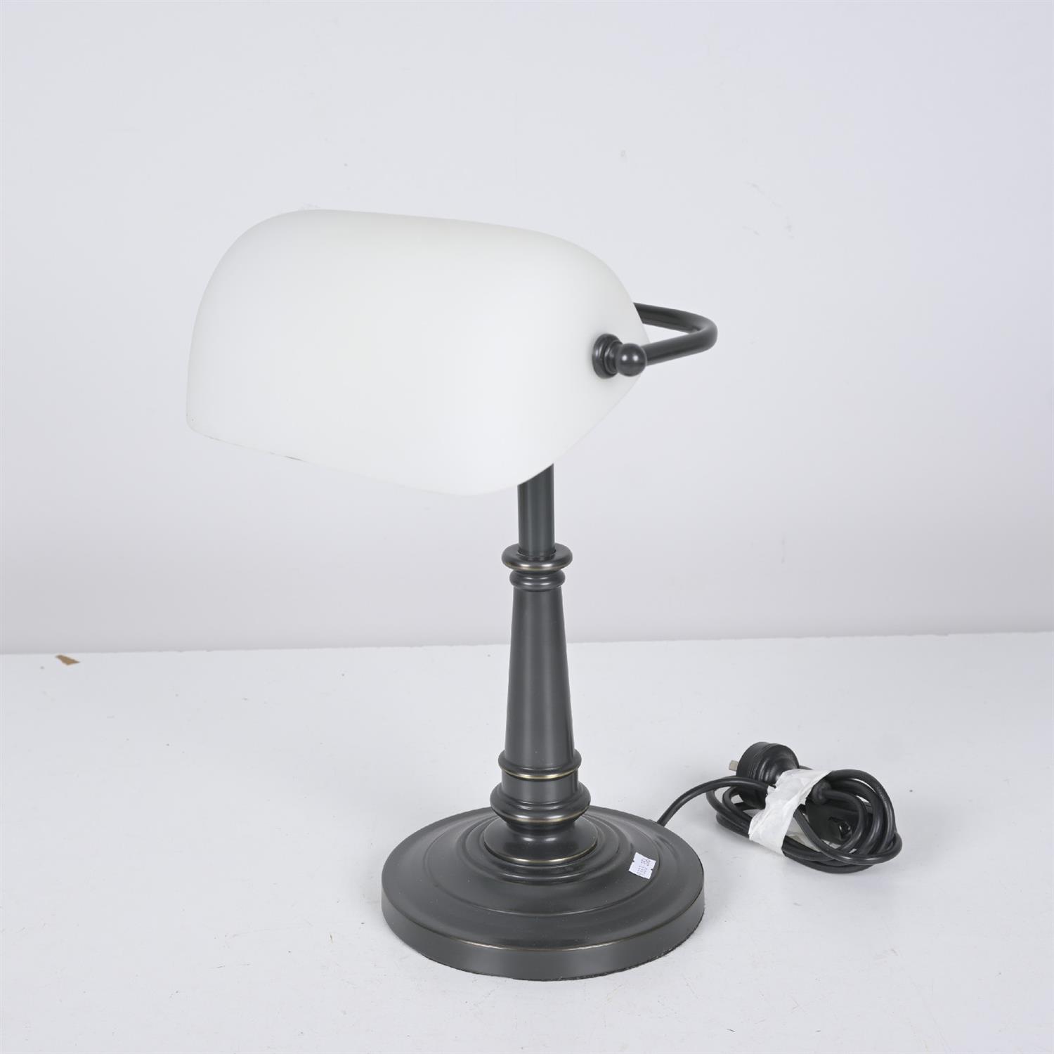 A BRONZE BASED BANKERS LAMP WITH WHITE SHADE (40H CM) (LEONARD JOEL DELIVERY: MEDIUM)