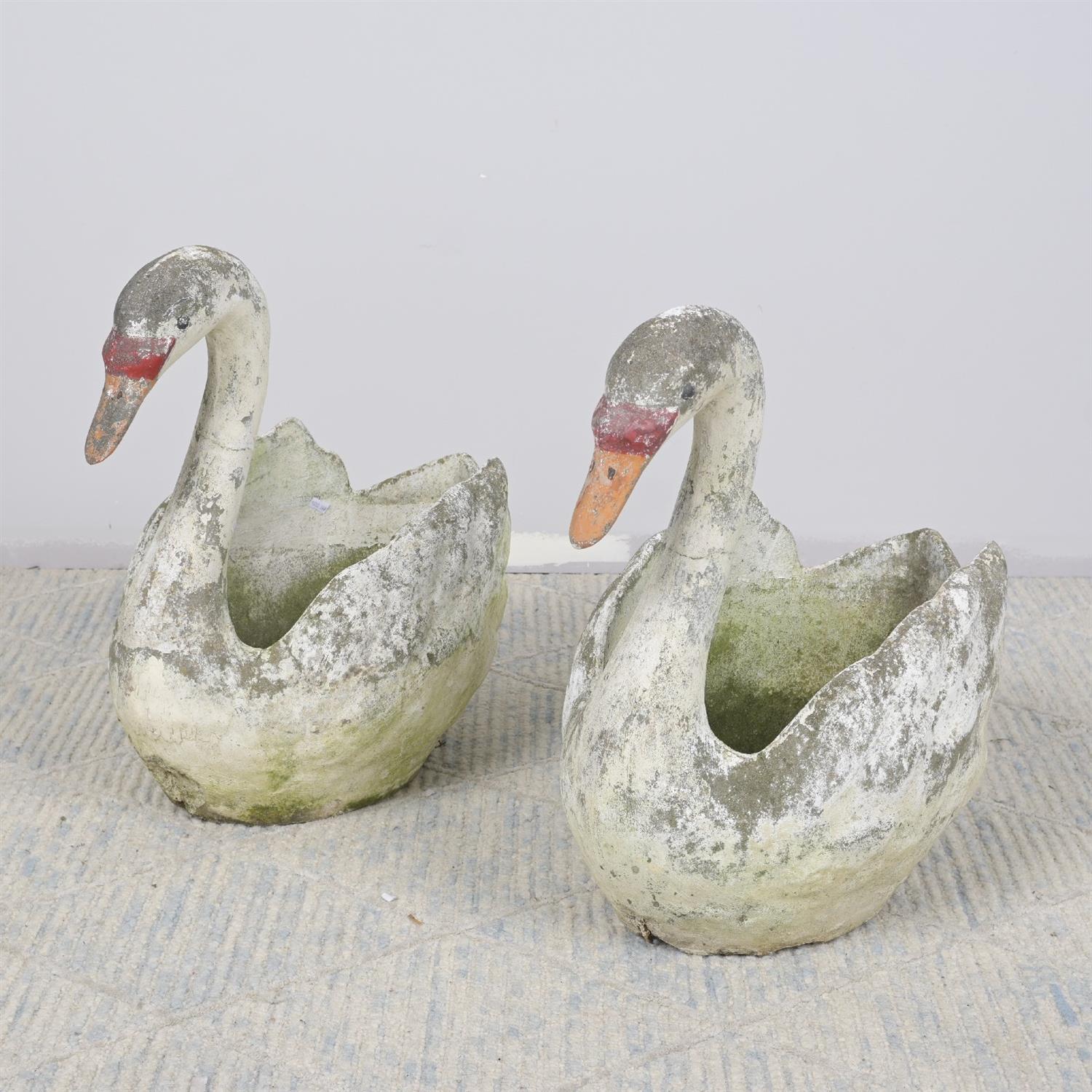 A PAIR OF 1950S PAINTED CONCRETE SWAN PLANTERS (A/F) (57H X 35W X 60D CM) (THIS HEAVY ITEM MUST BE REMOVED BY CARRIERS AT THE CUSTOMER'S EXPENSE. LEONARD JOEL STAFF CANNOT ASSIST CARRYING THIS ITEM)