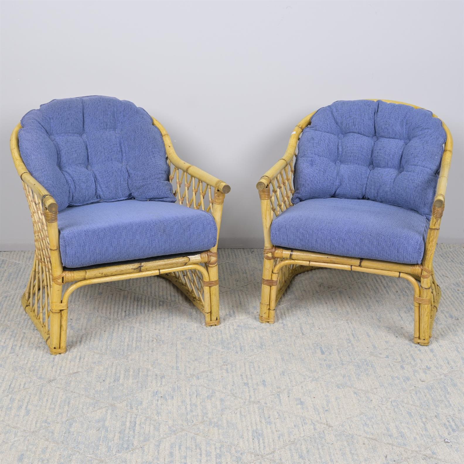 TWO 1950S CANE AND WOVEN RATTAN ARMCHAIRS (75H X 66W X 70D CM) (LEONARD JOEL DELIVERY: X-LARGE)