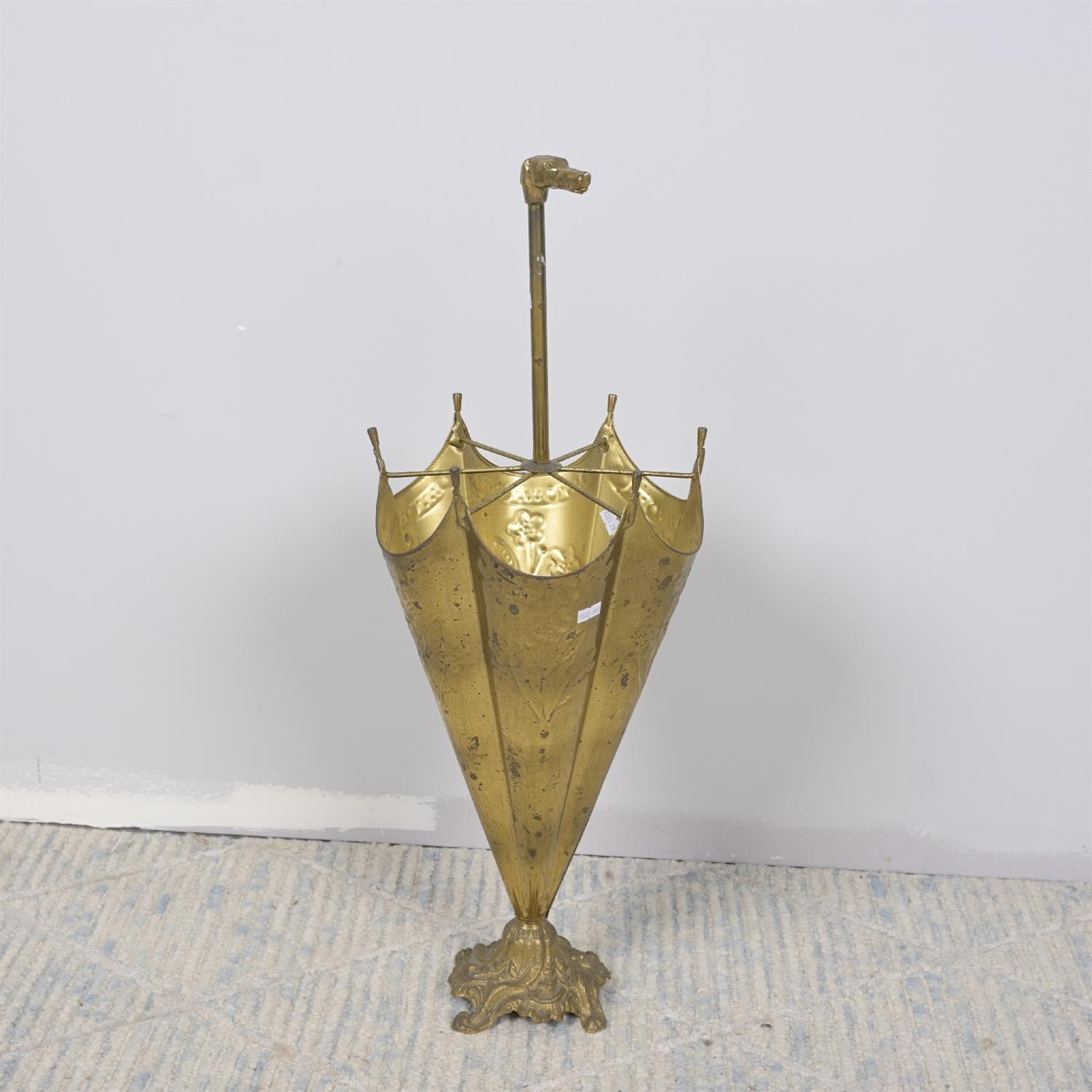 A FRENCH BRASS UMBRELLA FORM UMBRELLA STAND WITH DOG HANDLE (74H X 27DIA CM) (LEONARD JOEL DELIVERY: LARGE)