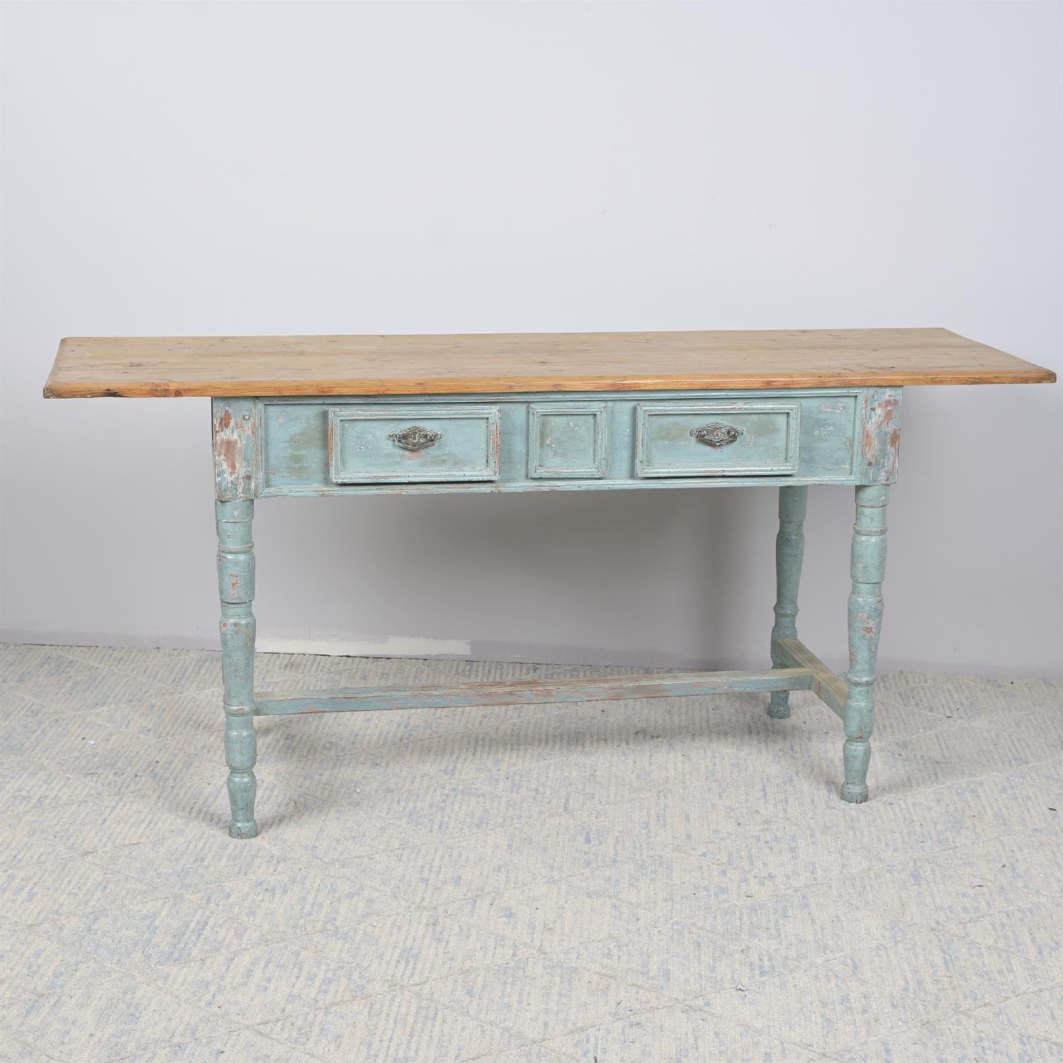 A RUSTIC LATE 19th CENTURY PINE SIDE TABLE, LATER PAINTED (89H X 190W X 58D CM) (LEONARD JOEL DELIVERY: X-LARGE)