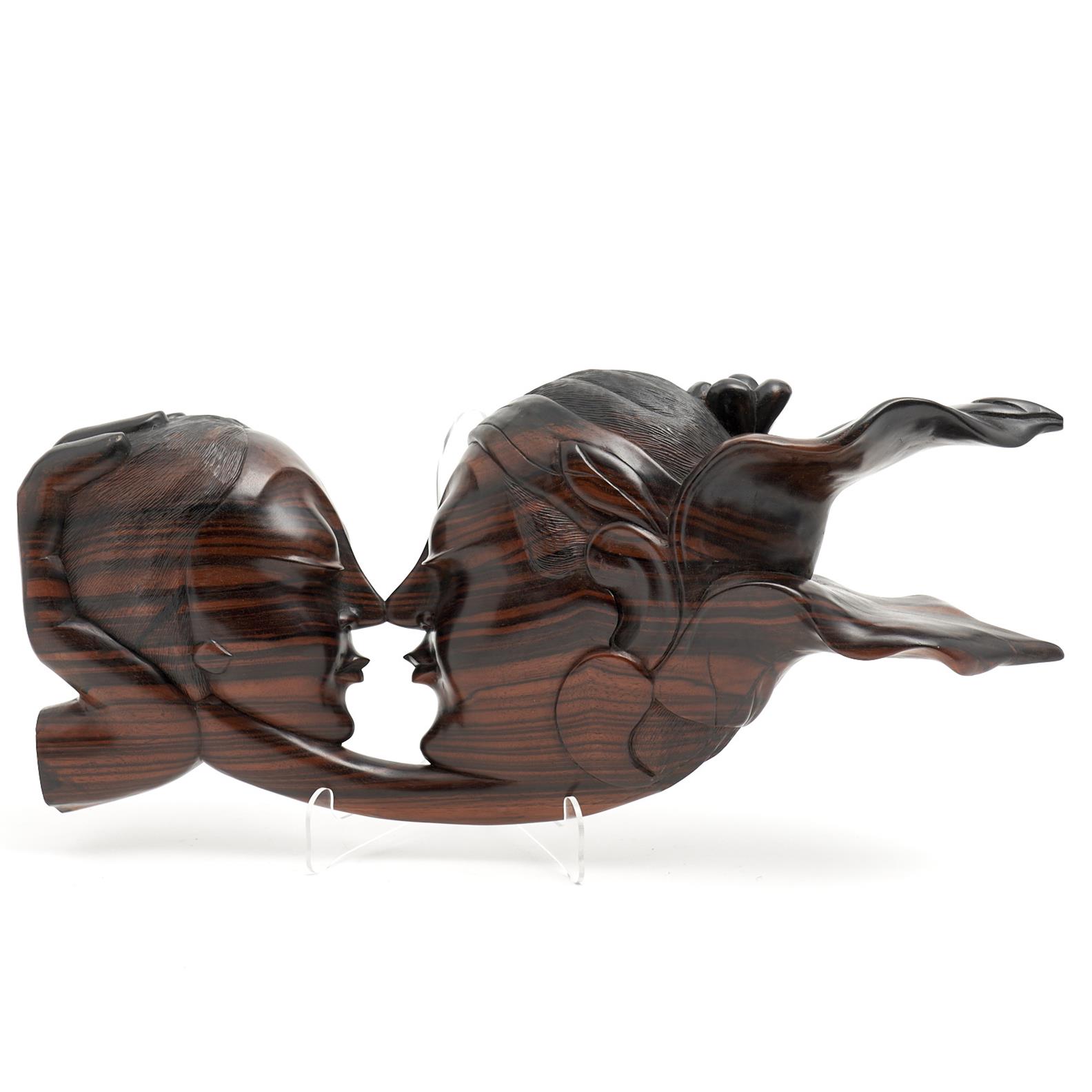 A CARVED ROSEWOOD FIGURE OF AN EMBRACING COUPLE W.47CM, LEONARD JOEL DELIVERY SIZE: LARGE